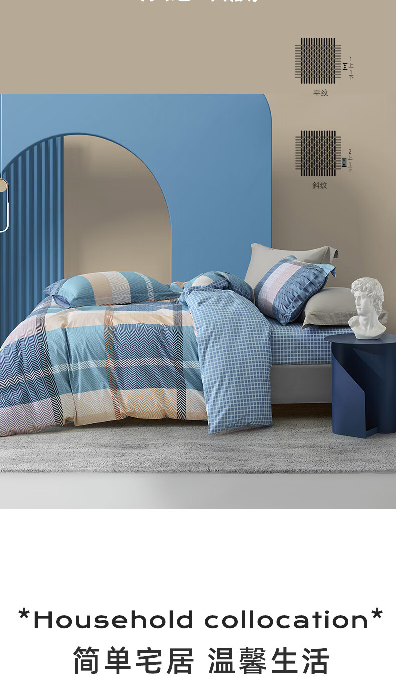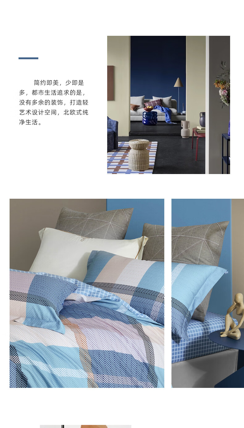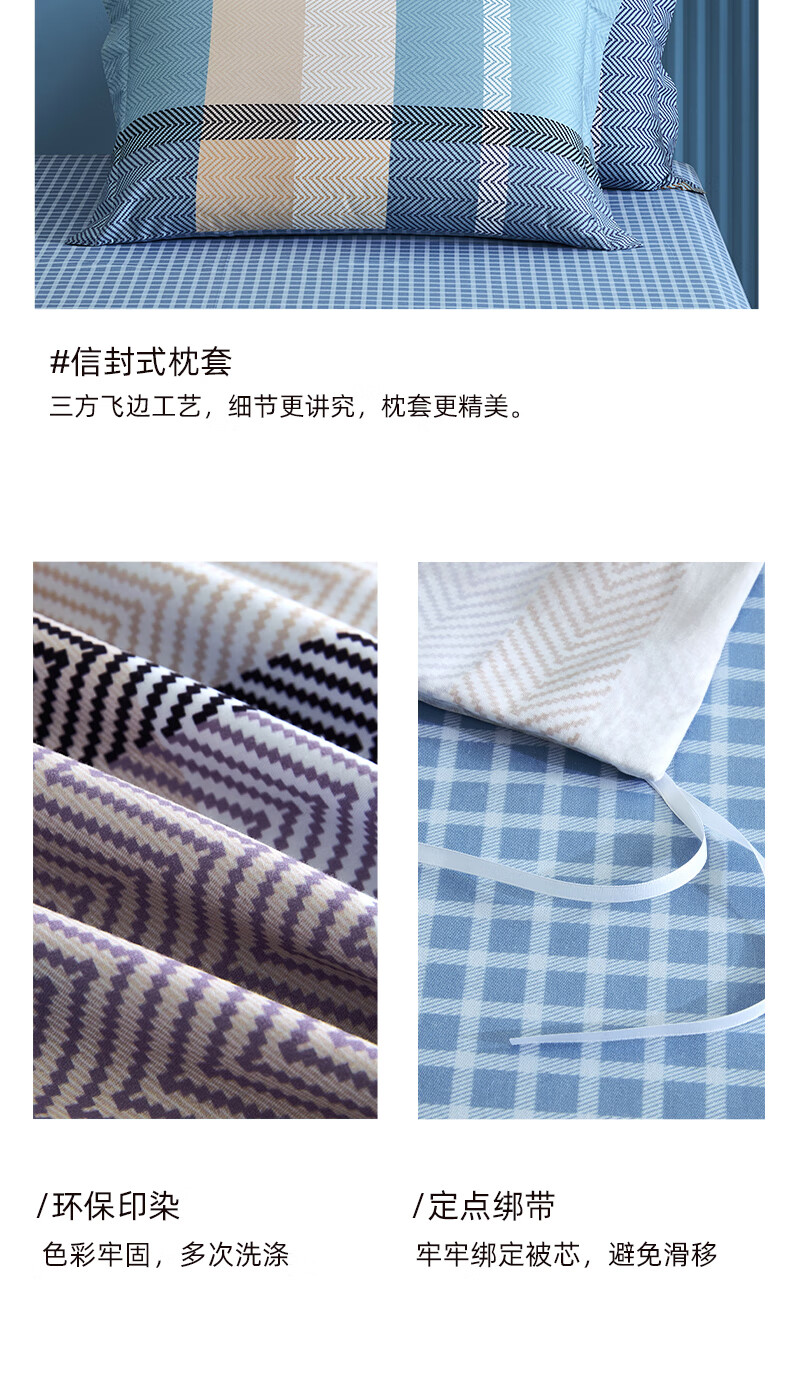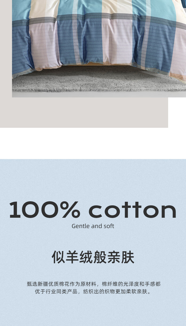 40支纯棉触感细腻,AB双面设计,打造轻艺术风格;三方飞边工艺,细节更讲究,枕套更精美;甄选新疆优质棉花作为原材料,纺织出的织物更加柔软