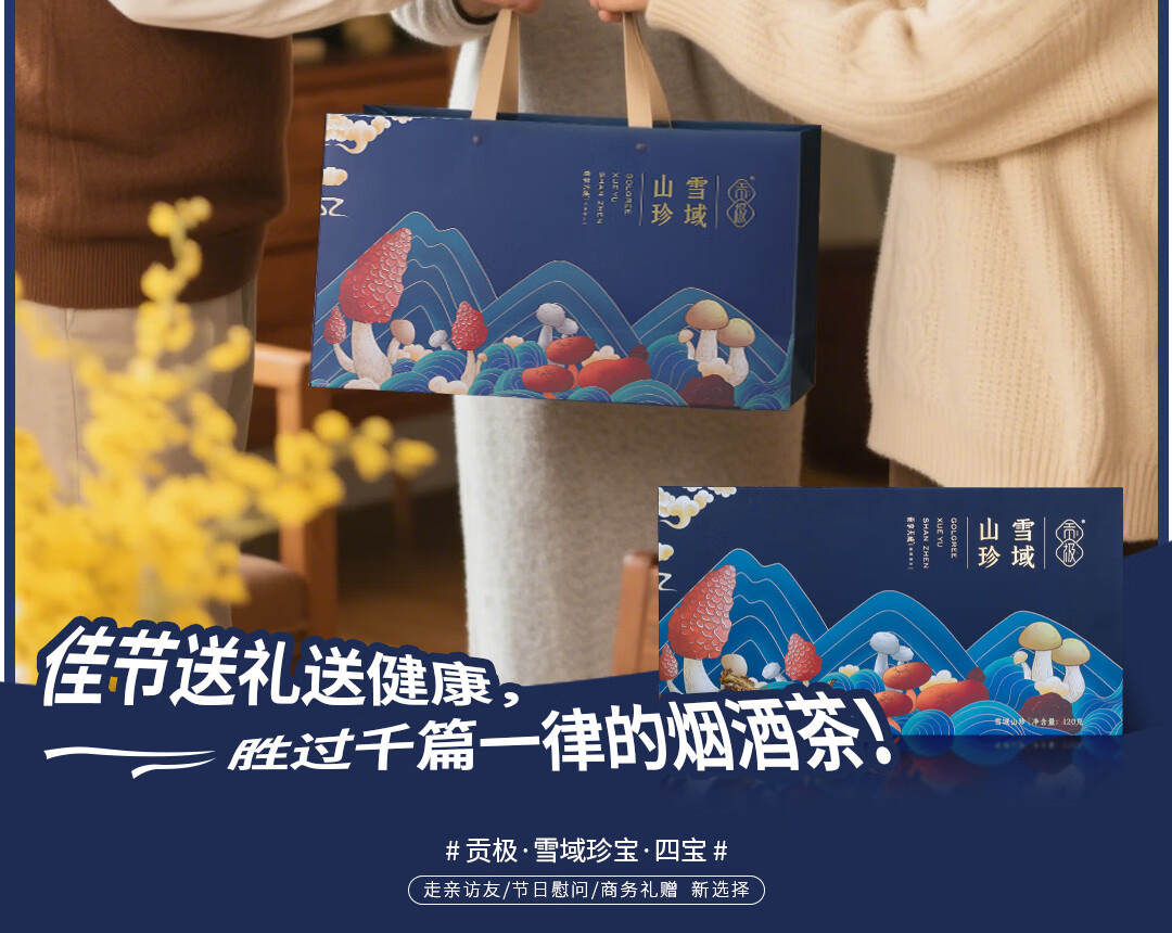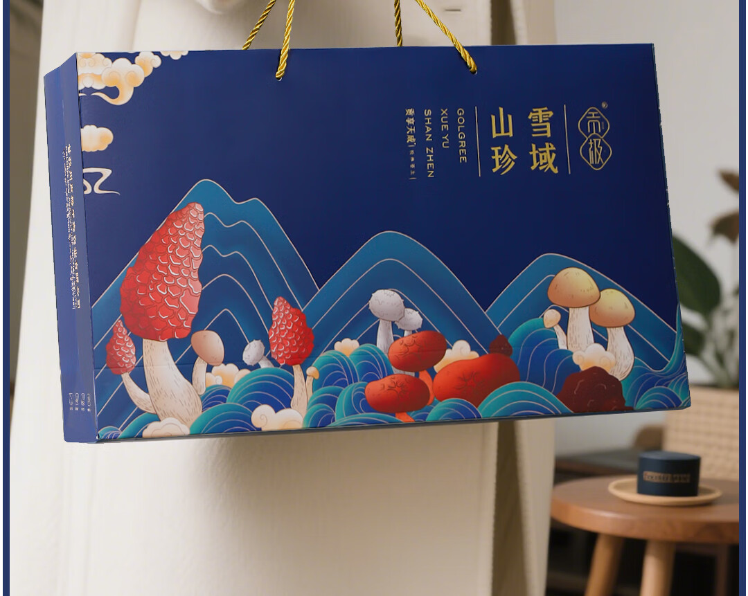 高原野生菌松茸、红牛肝菌、青杠菌 、鹅蛋菌;礼盒好看时尚国潮风格;高端滋补健康送礼