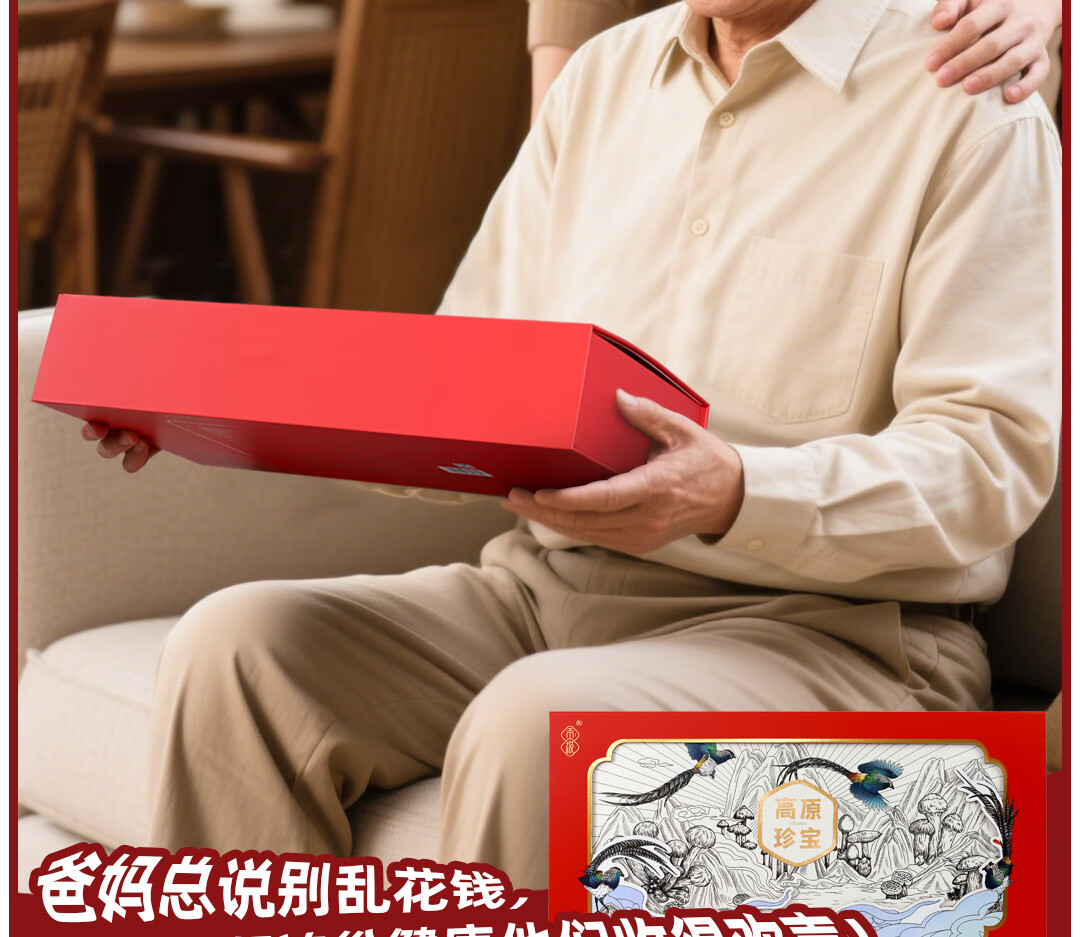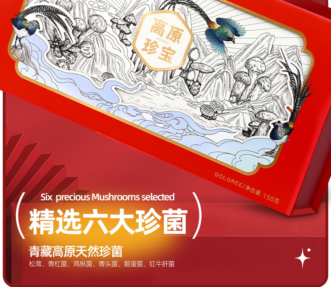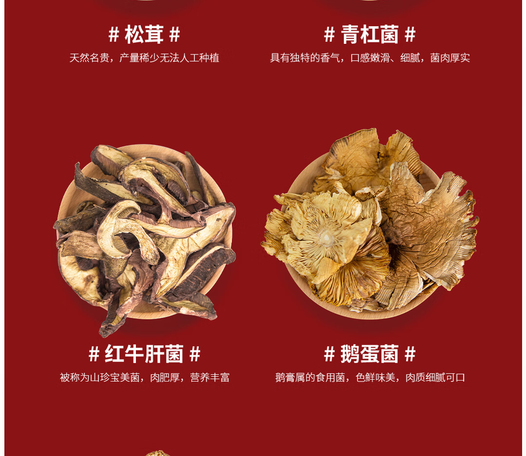 6种高原野生菌一盒尽享;健康滋补好礼送领导送客户送长辈;红色礼盒国潮风格好看时尚
