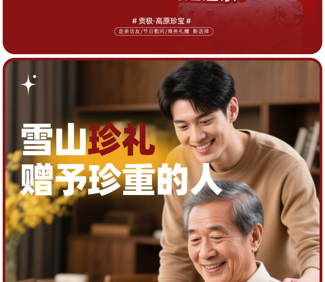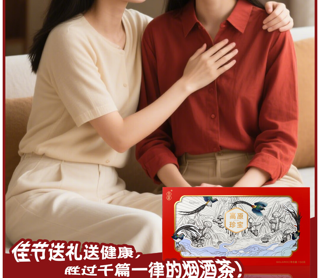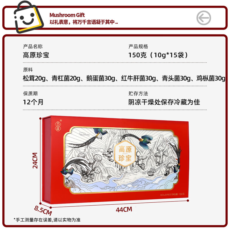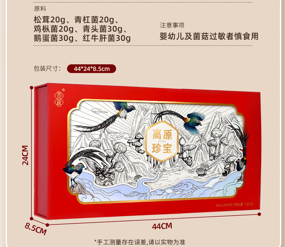 6种高原野生菌一盒尽享;健康滋补好礼送领导送客户送长辈;红色礼盒国潮风格好看时尚