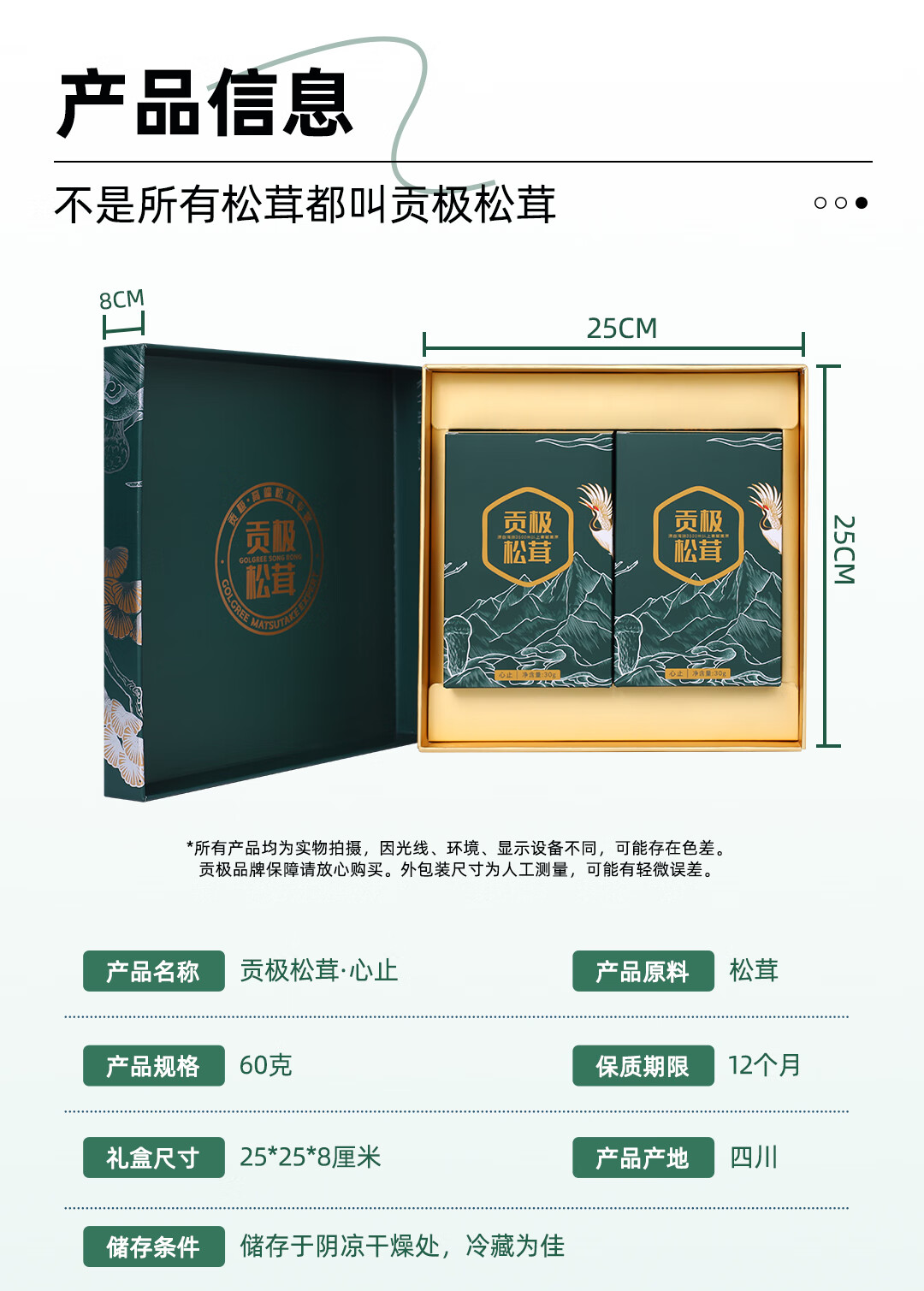 配置清单:未开伞松茸*60g 手提袋*1 礼盒*1