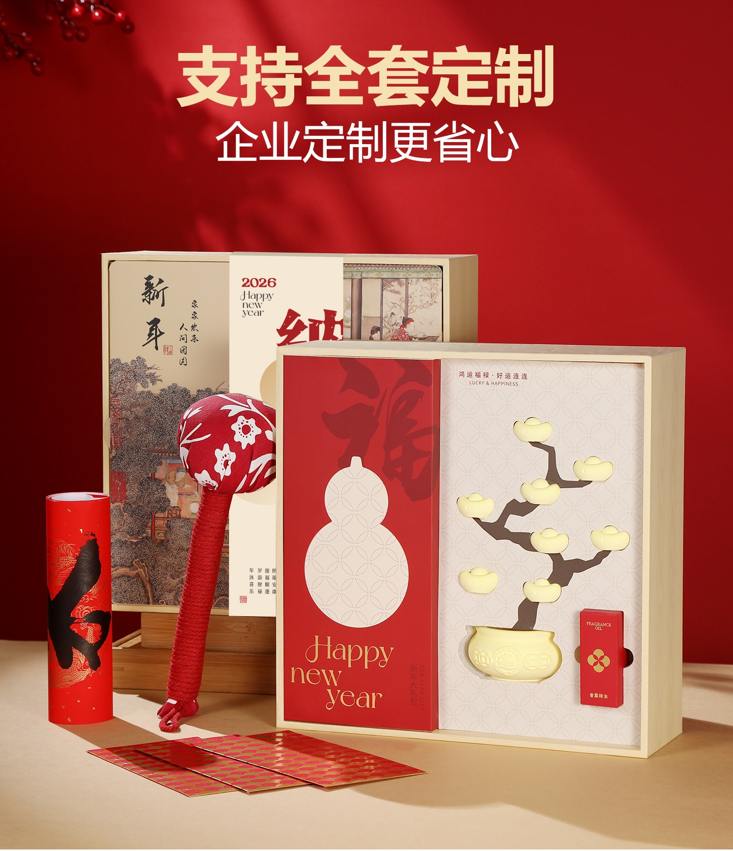 配置清单:新年大礼包(五福临门锤、新春对联、新年红包*6)+招财聚宝盆+香薰精油