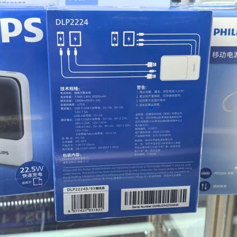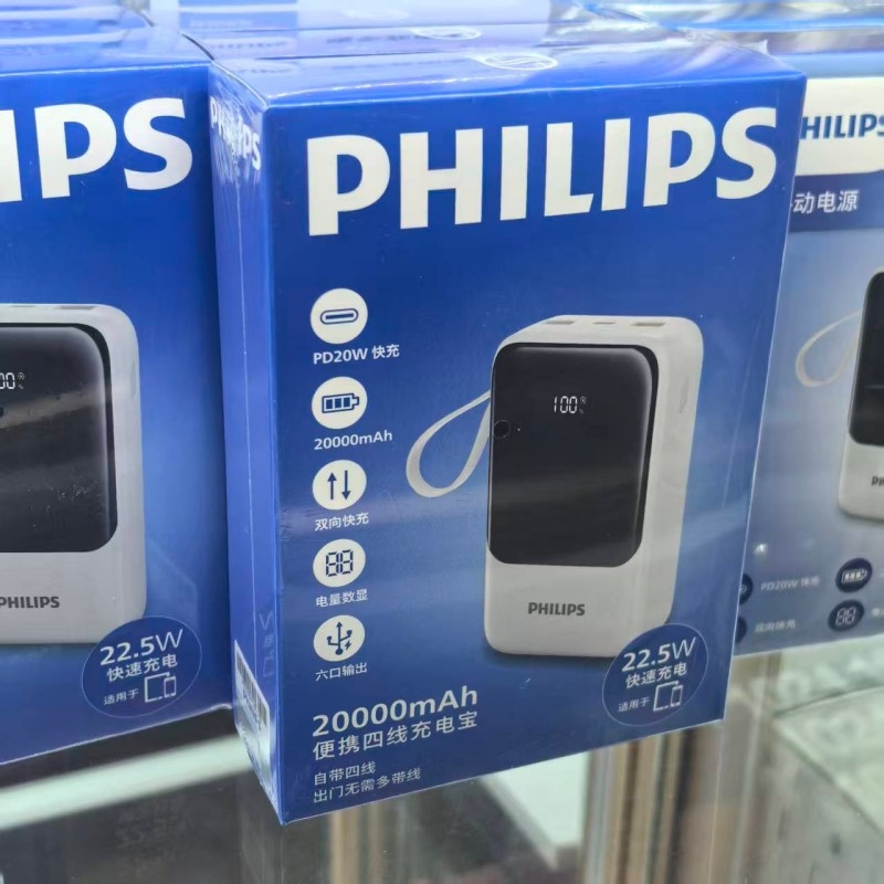 飞利浦 2万毫安充电宝快充自带四线DLP2224