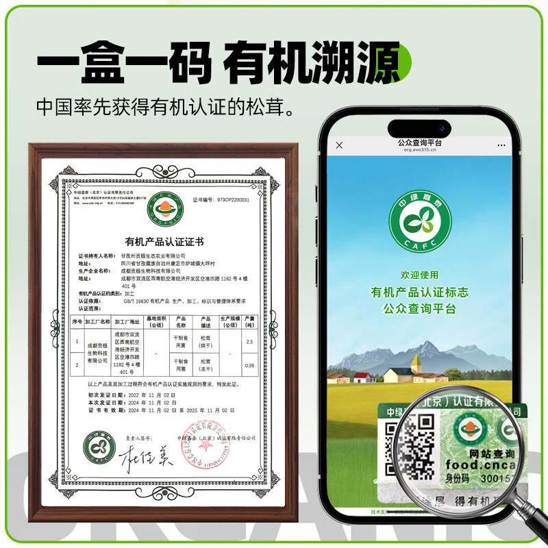 高原野生松茸,稀缺;原产地,加工双有机证;送礼送健康