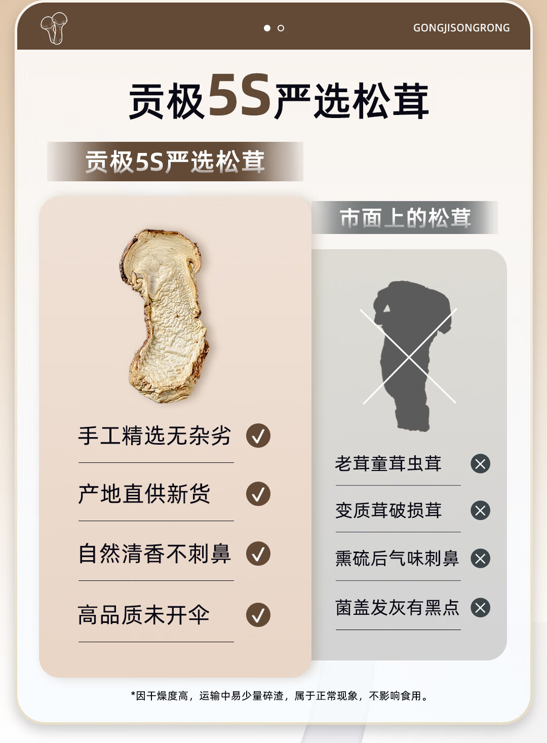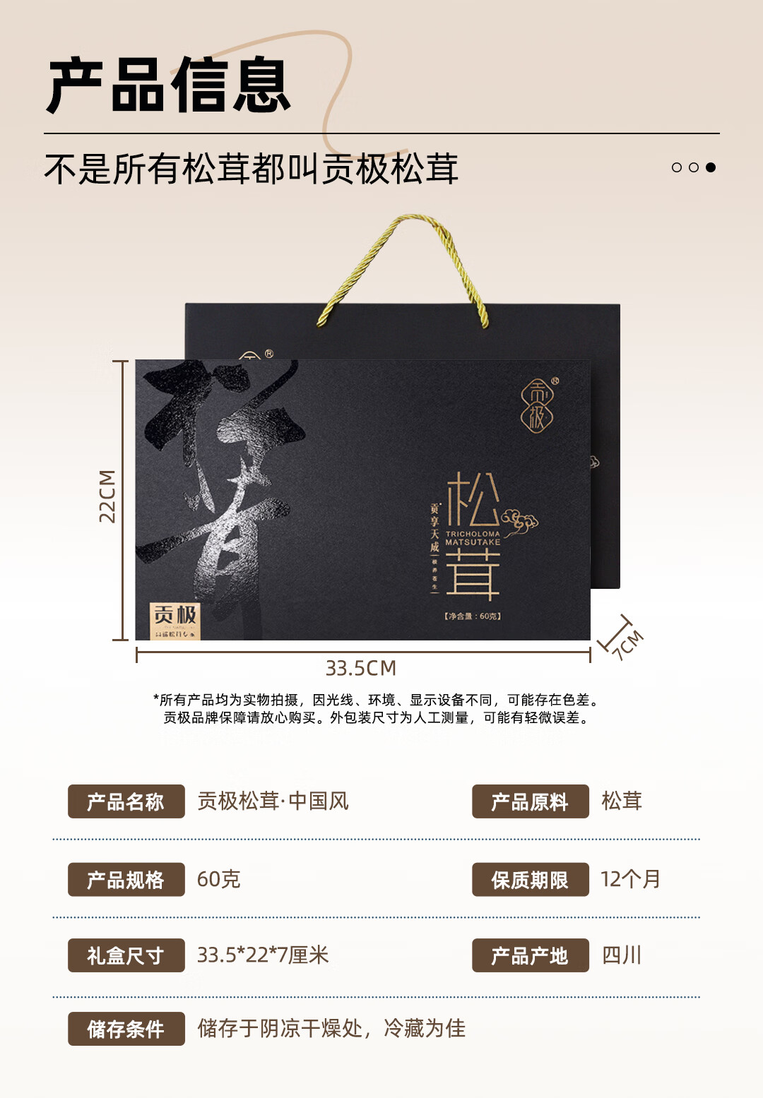 配置清单:松茸*60g 礼盒*1 礼袋*1
