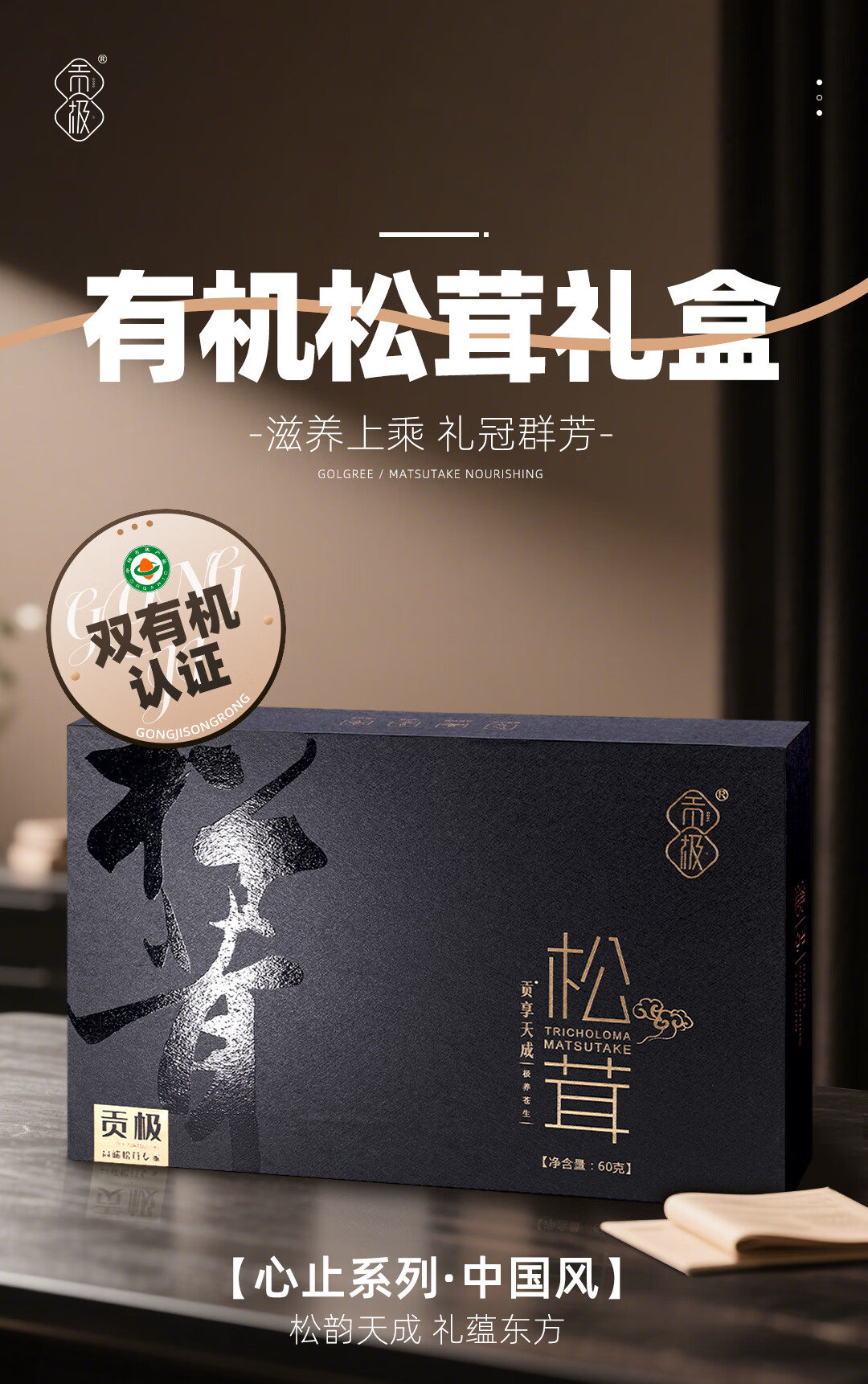 贡极 有机松茸中国风礼盒60gB05