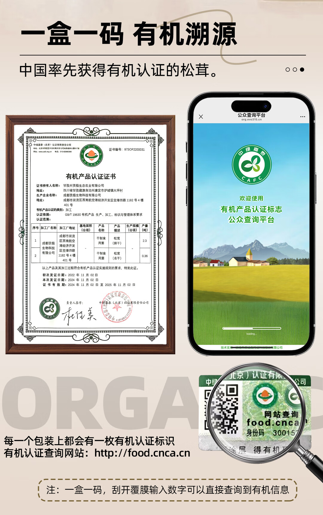 高原稀缺野生菌,滋补营养健康品;原产地和加工双重有机认证;未开伞松茸品质更好营养价值更高