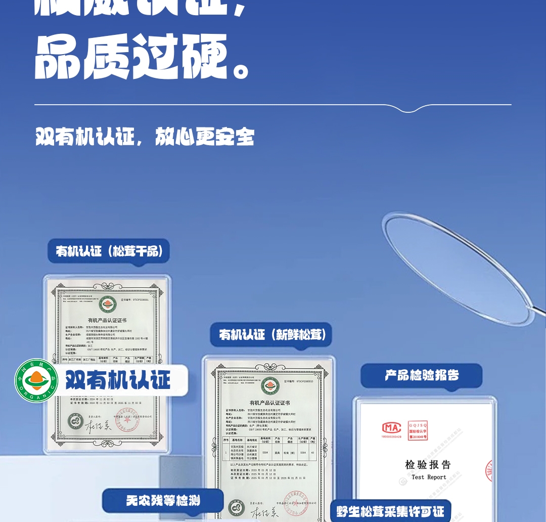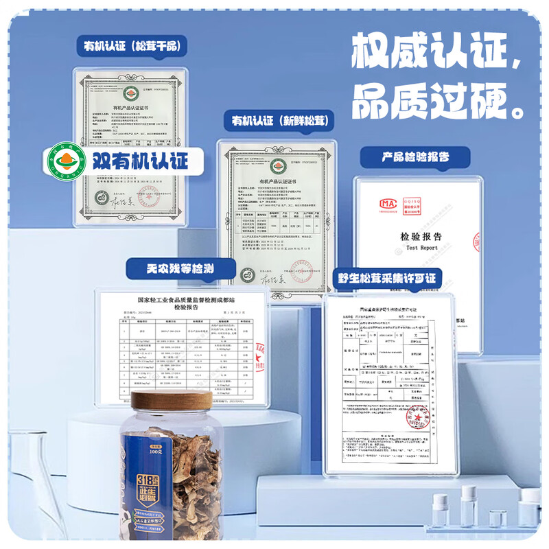 高原野生菌松茸,营养健康;原产地和生产加工双重有机认证;家庭装性价比高