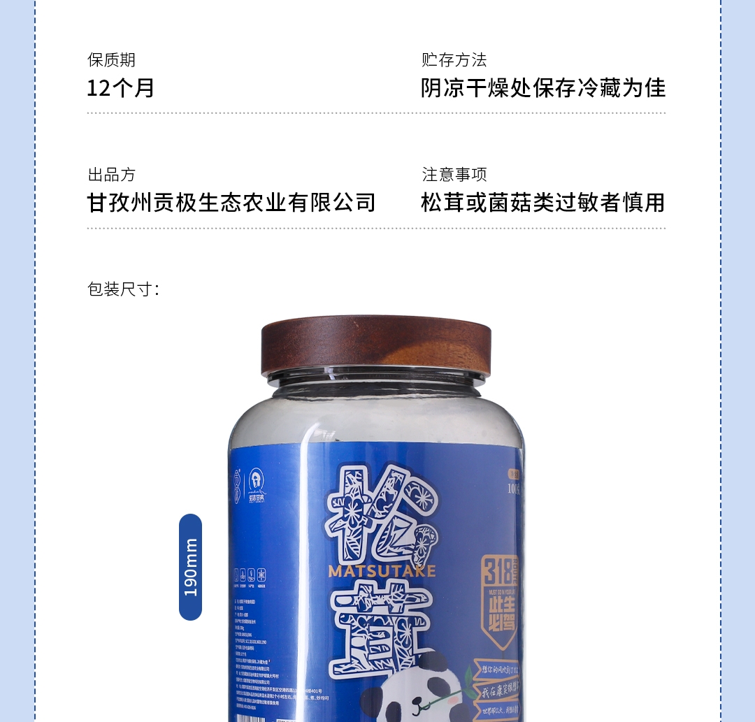 配置清单:松茸*100g 松茸罐*1 打包盒*1