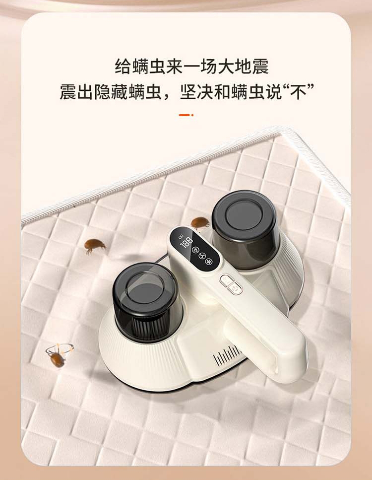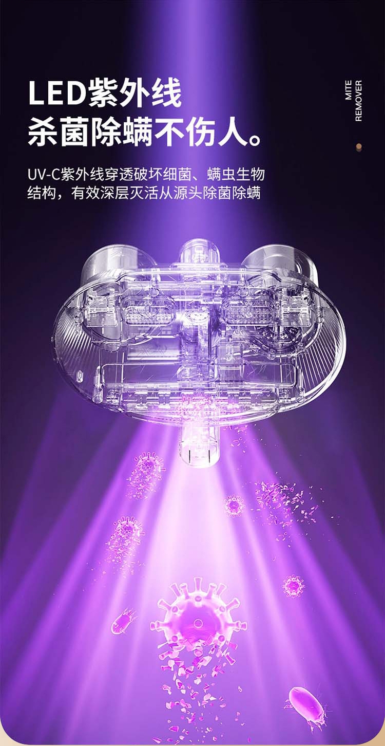 LED紫外线杀菌除螨不伤人;强拍劲吸,一键深除过敏源;频双拍打,两倍拍打力