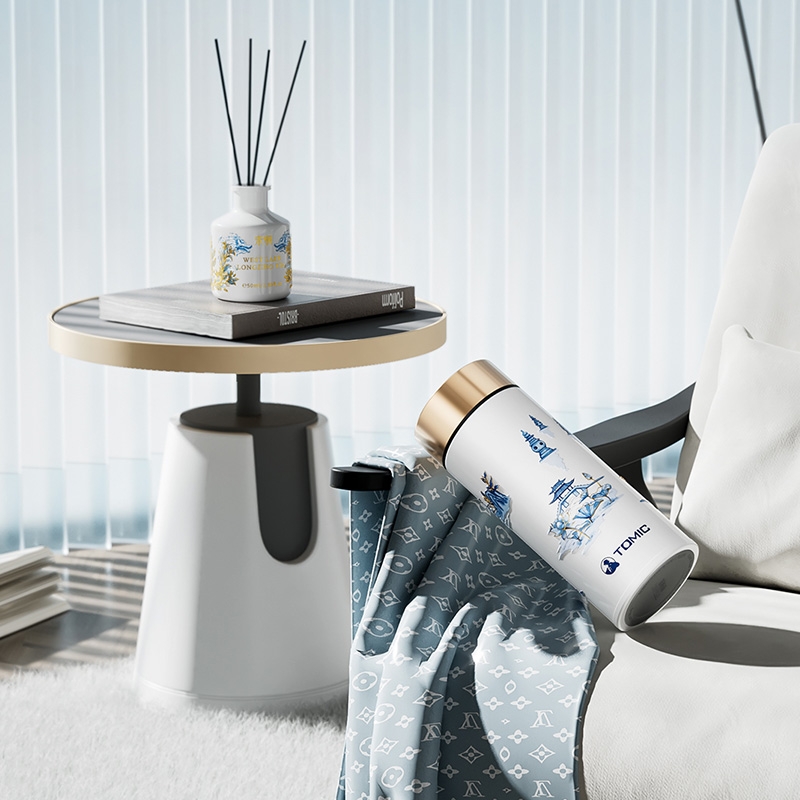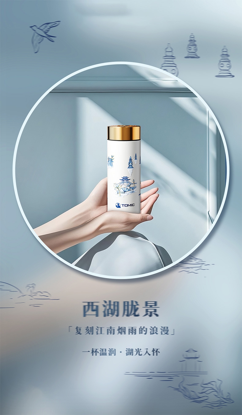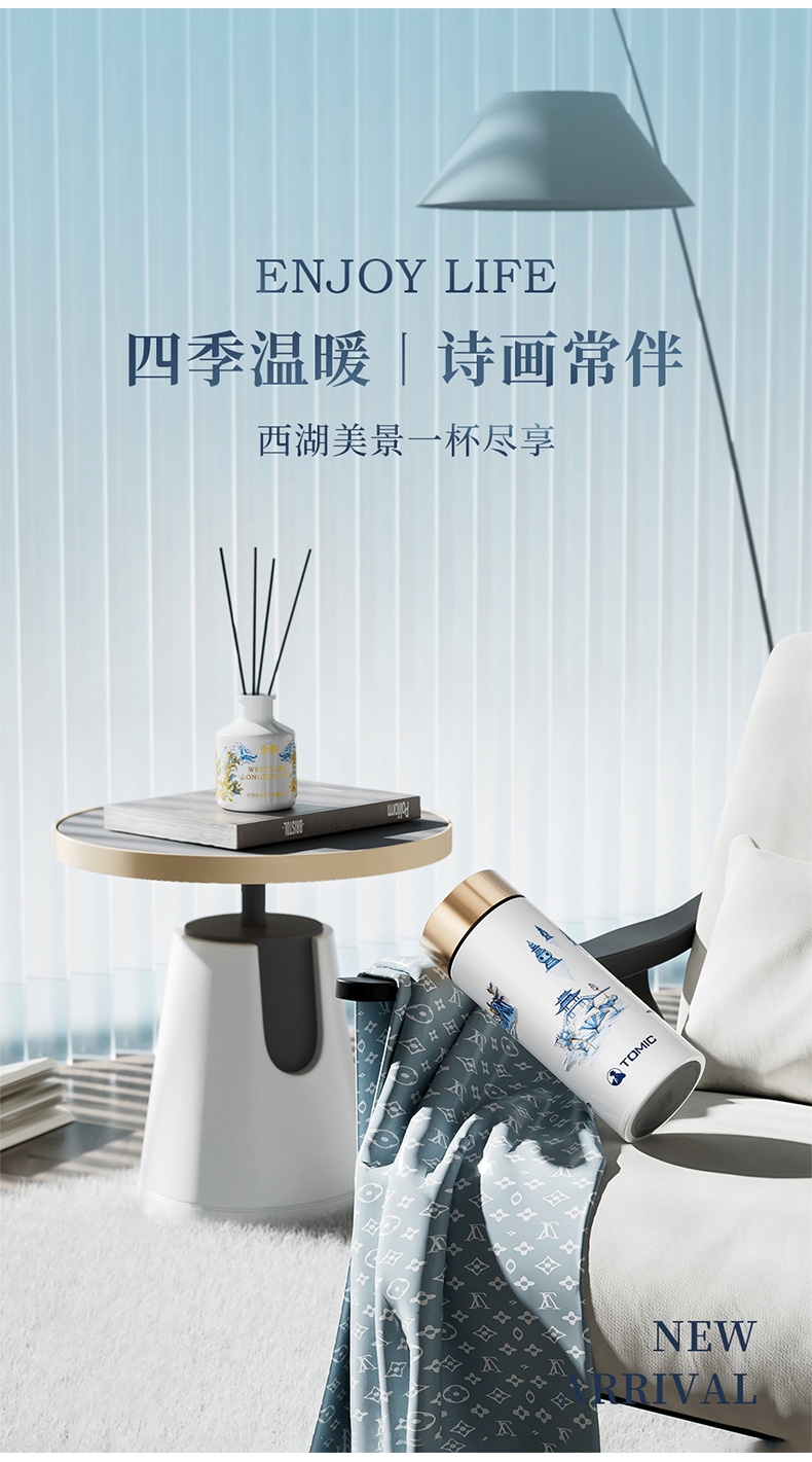 轻便陶瓷内胆;压纹杯盖,典雅独特;3D喷绘,画面精美