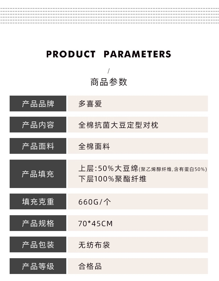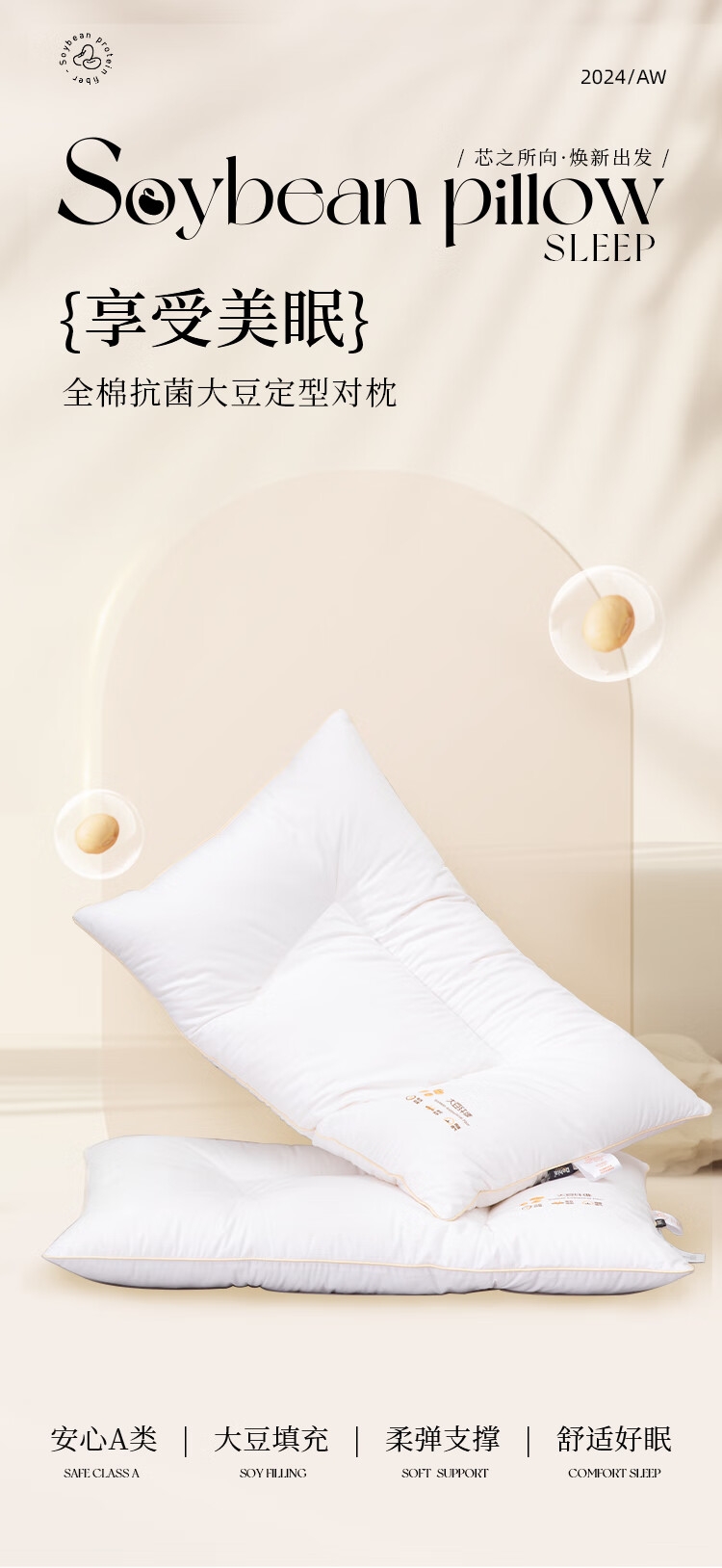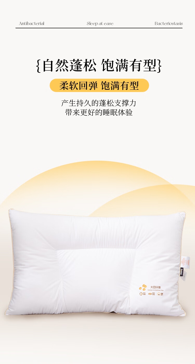 产品采用全棉A类面料;柔软,舒适,透气;分区设计,头部受力均匀,睡眠更舒适