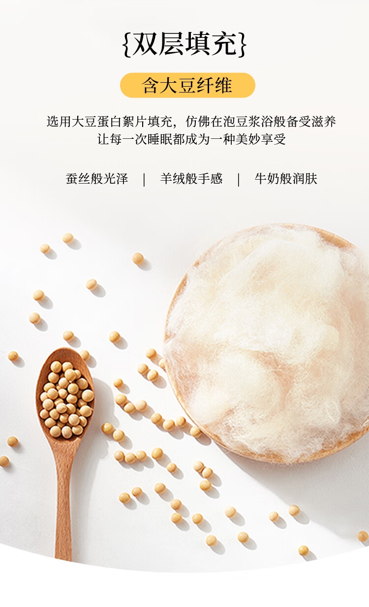 填充:上层50%大豆纤维50%聚酯纤维(60G) 下层100%聚酯纤维(600G)