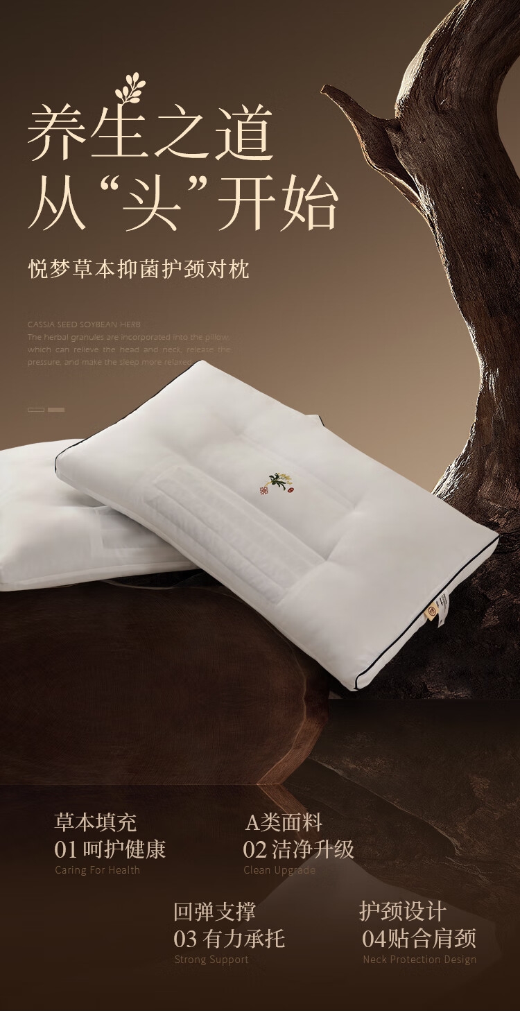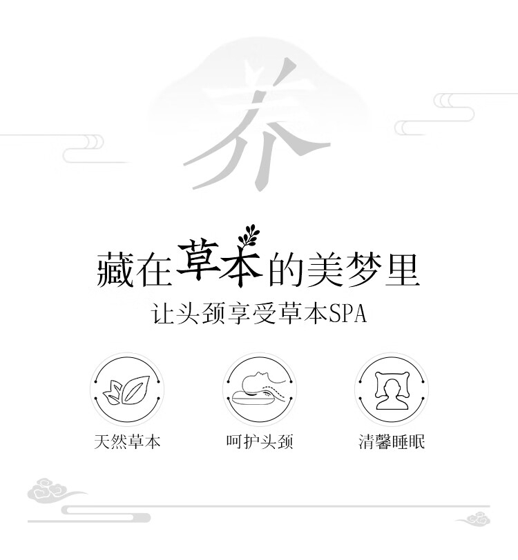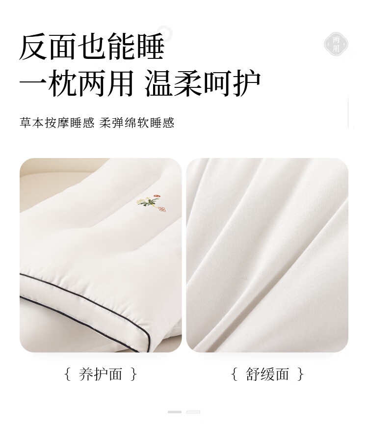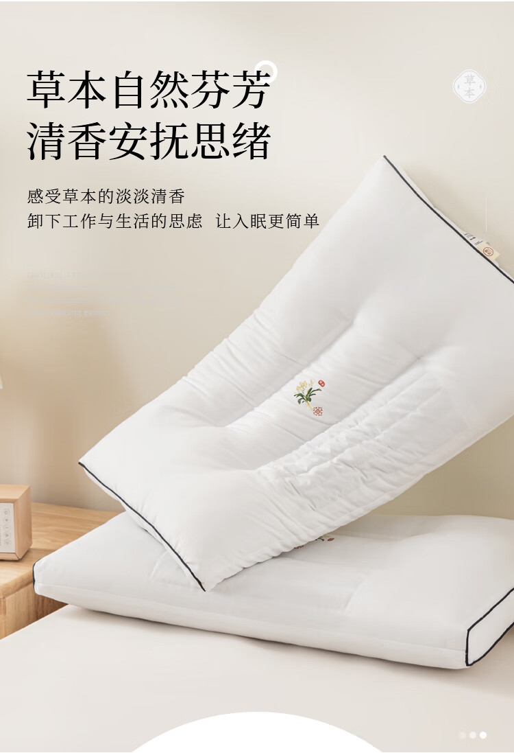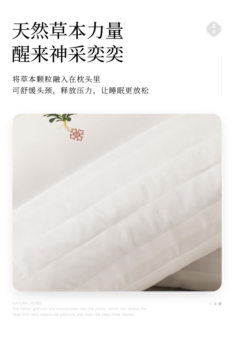 柔软舒适;吸湿透气;枕芯加入天然草本填充,感受淡淡草本清香