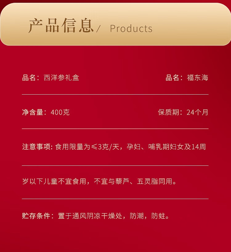 配置清单:西洋参-400克/盒(西洋参段 1.5-2克)