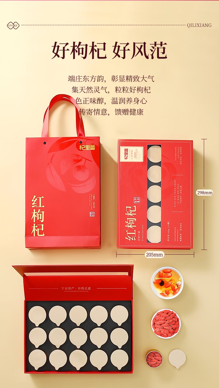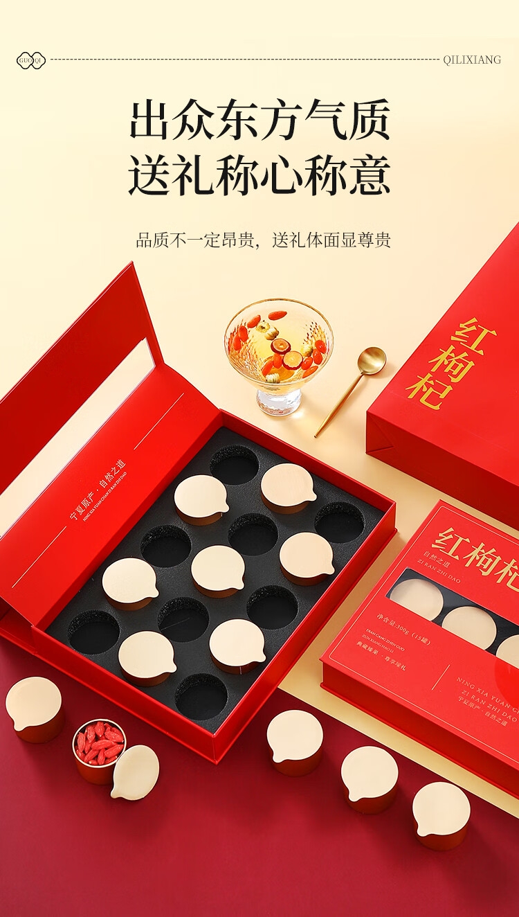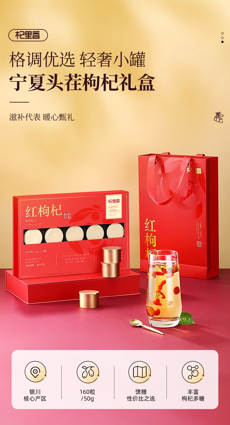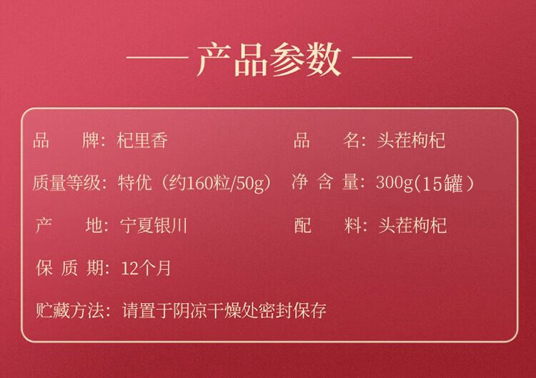 配置清单:枸杞礼盒300g(15罐)*1盒+礼袋*1