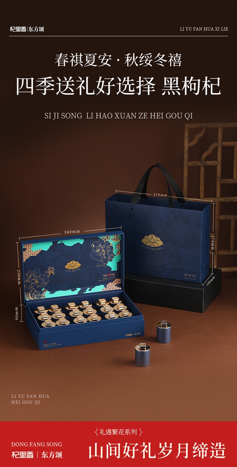 配置清单:大果黑枸杞礼盒300g*1盒+礼袋*1