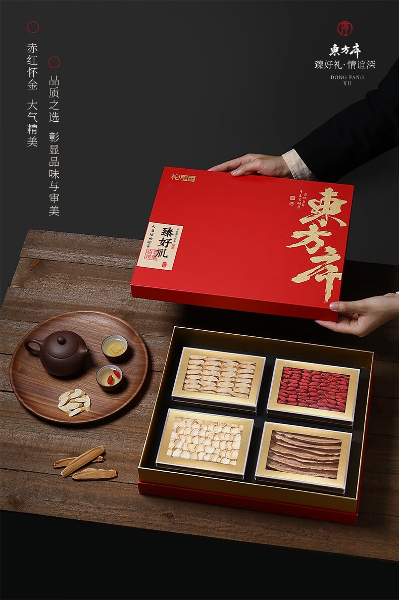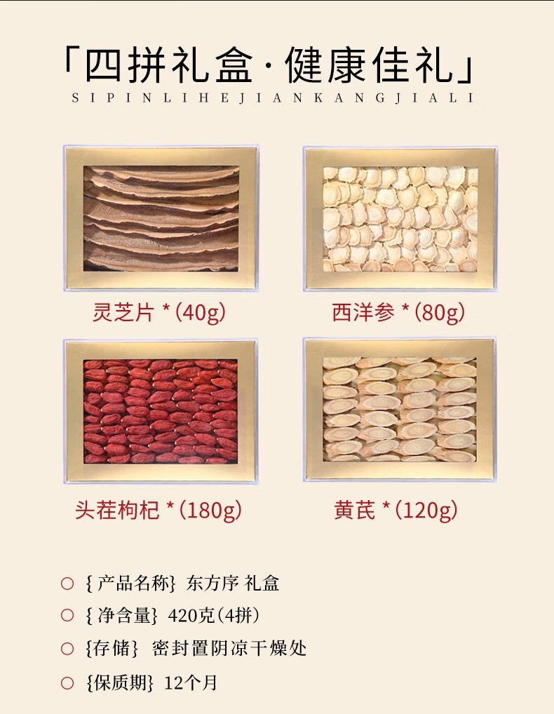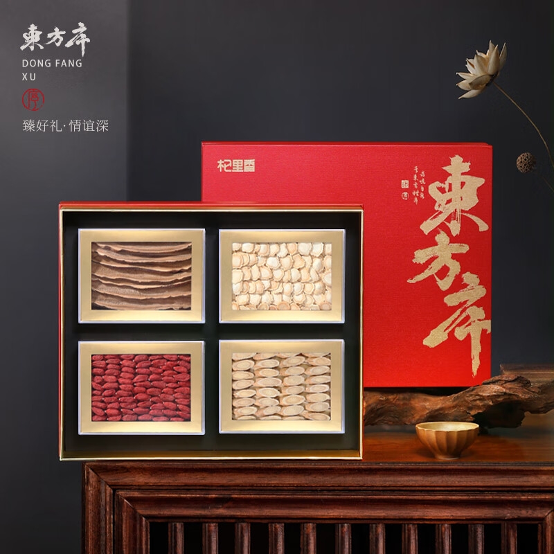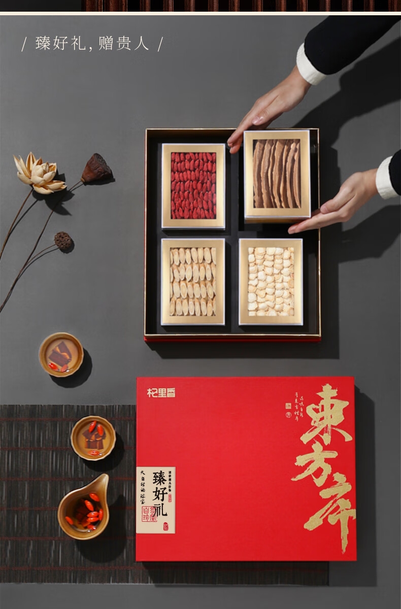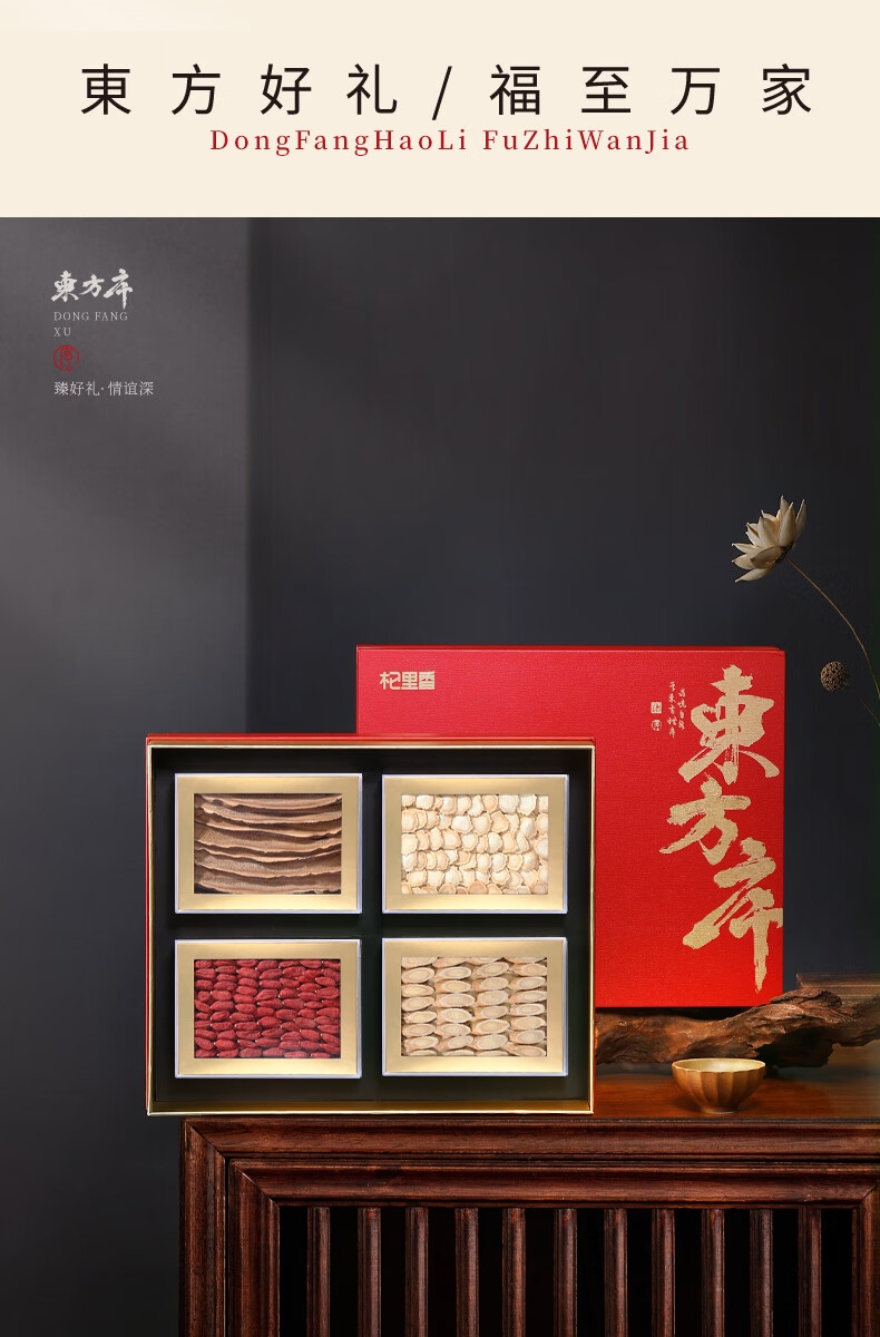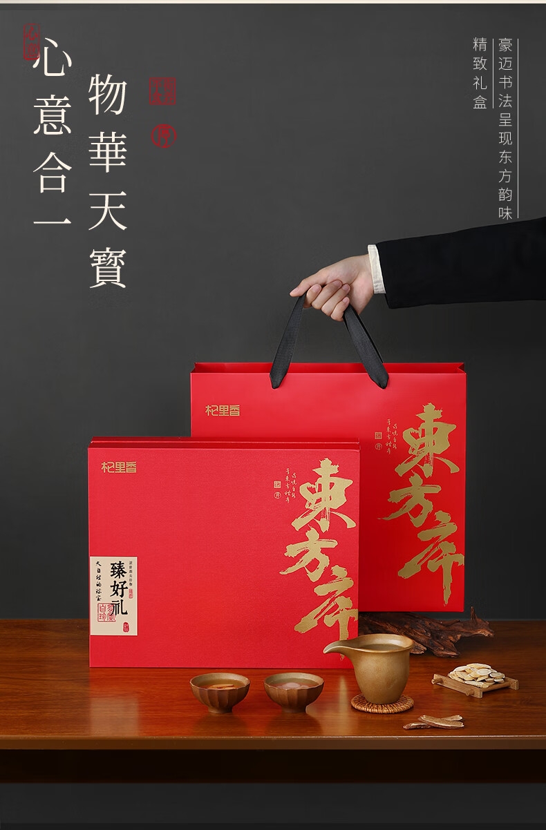 配置清单:杞里香420g东方序四拼礼盒A*1+礼袋*1