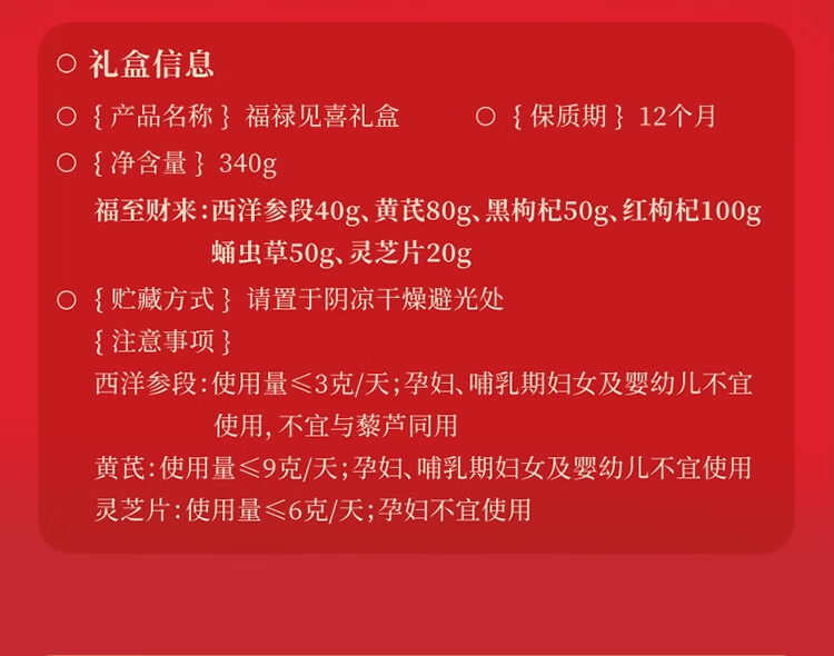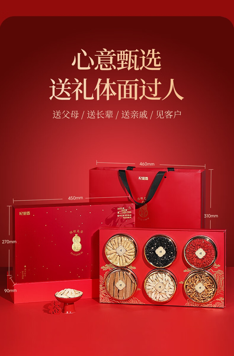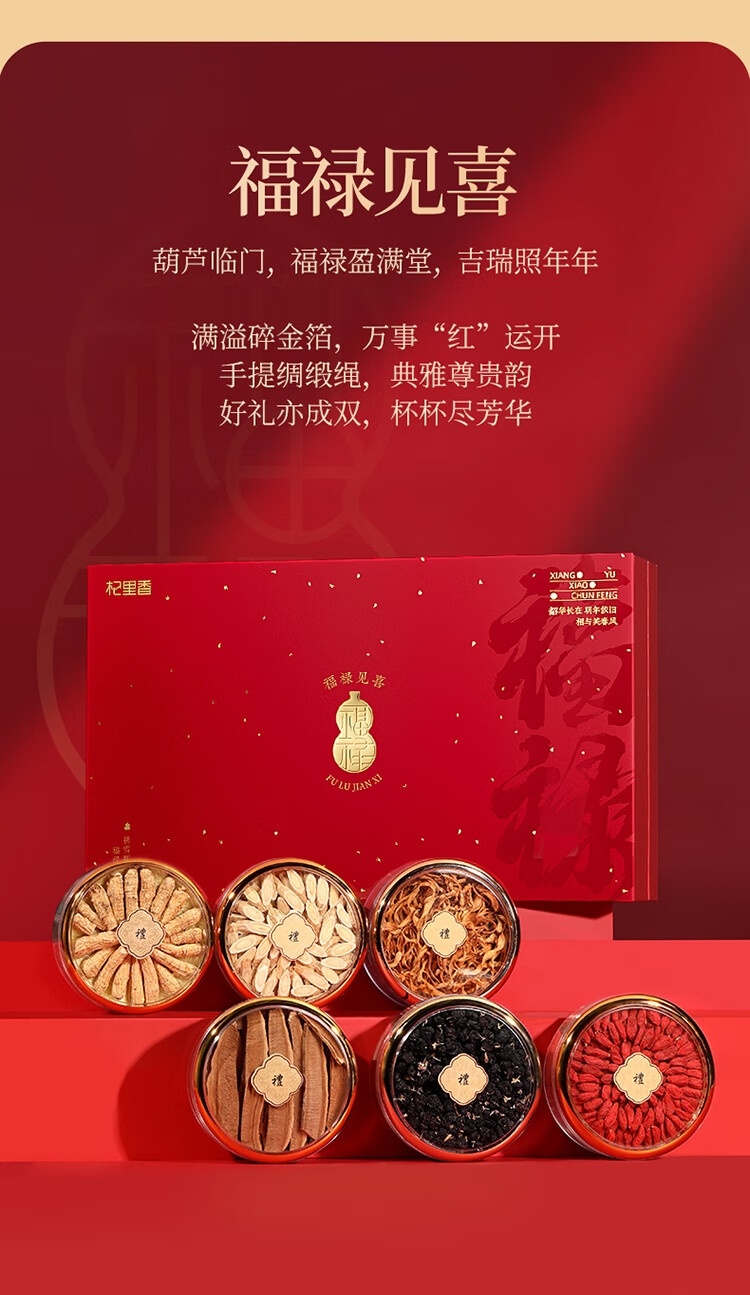 配置清单:杞里香340g福禄见喜6拼礼盒*1+礼袋*1
