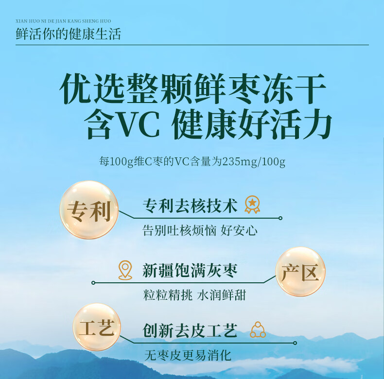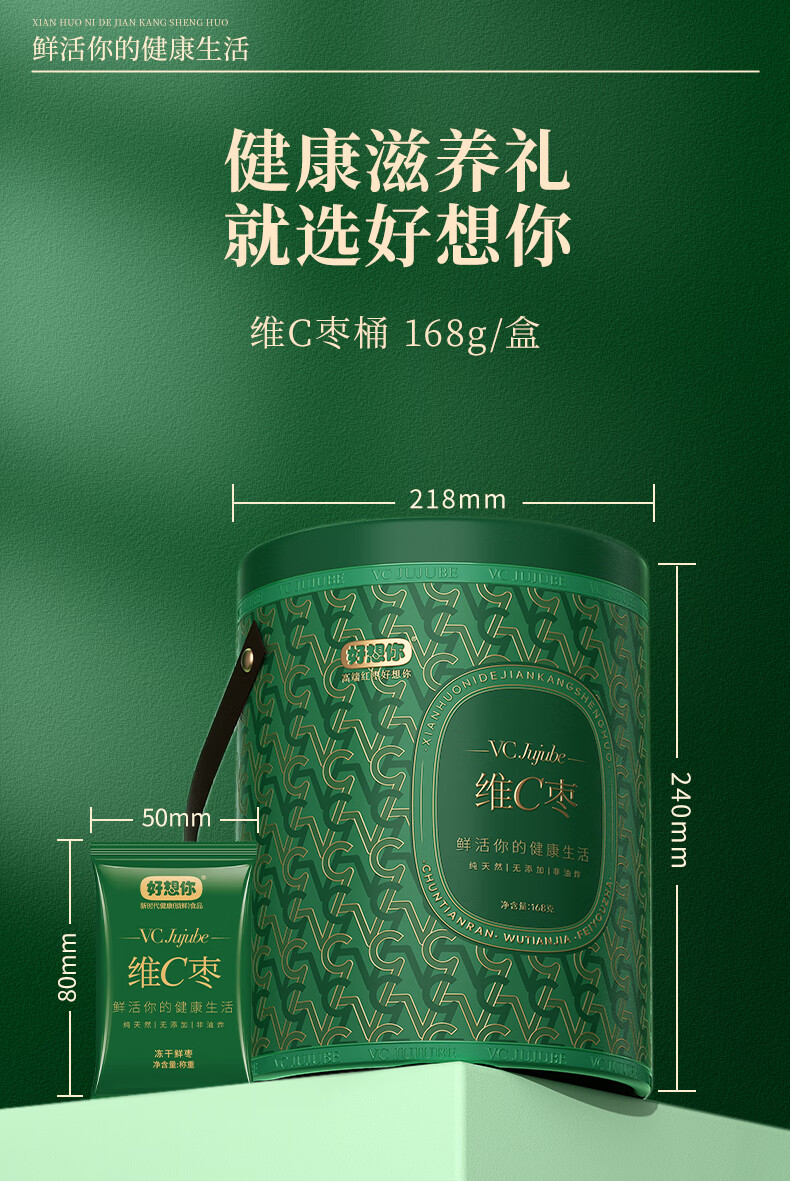 配置:168g维C枣单粒装 (冻干去皮去核鲜枣) 内含约110-120小包