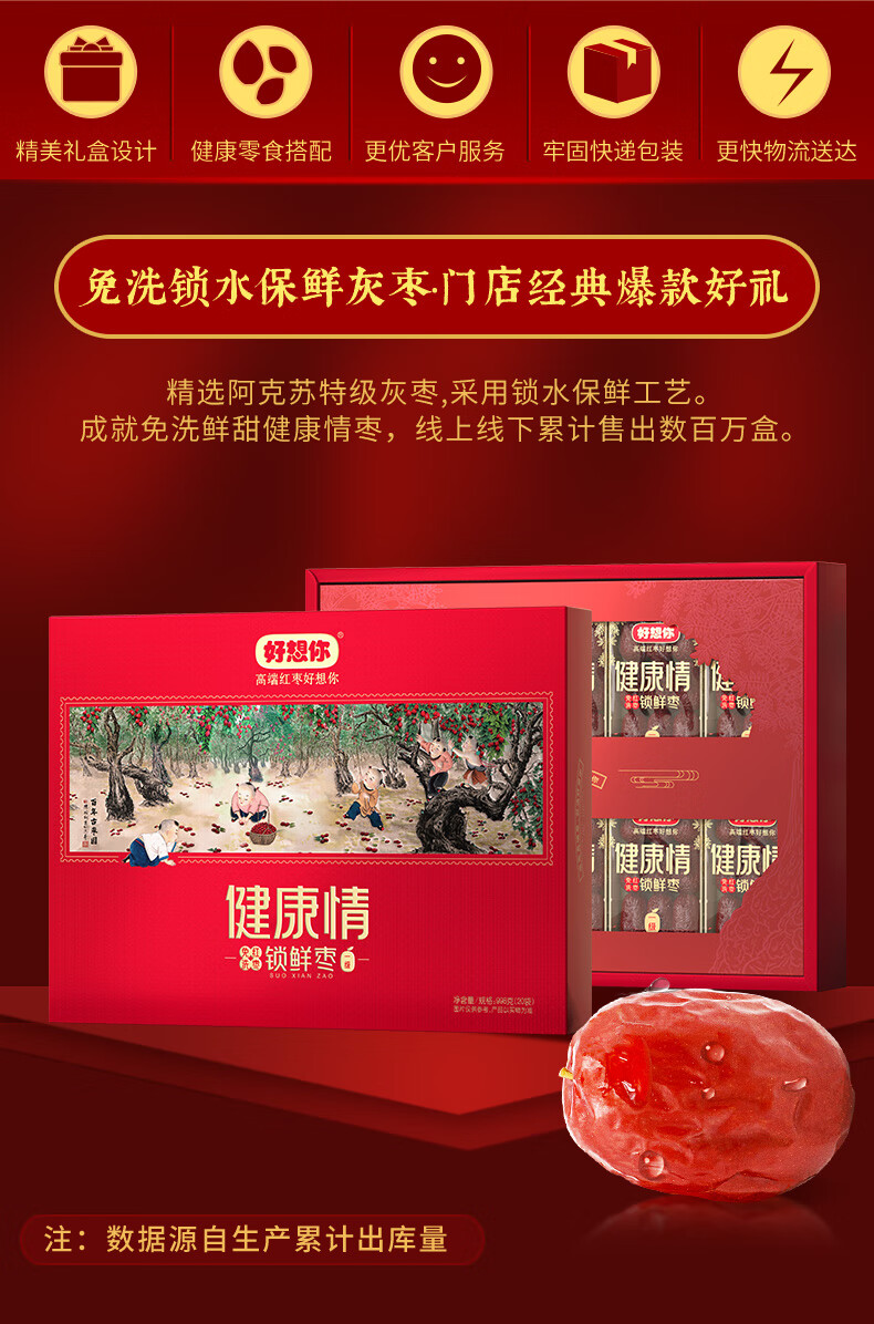 好想你 一级健康情锁鲜枣礼盒998g