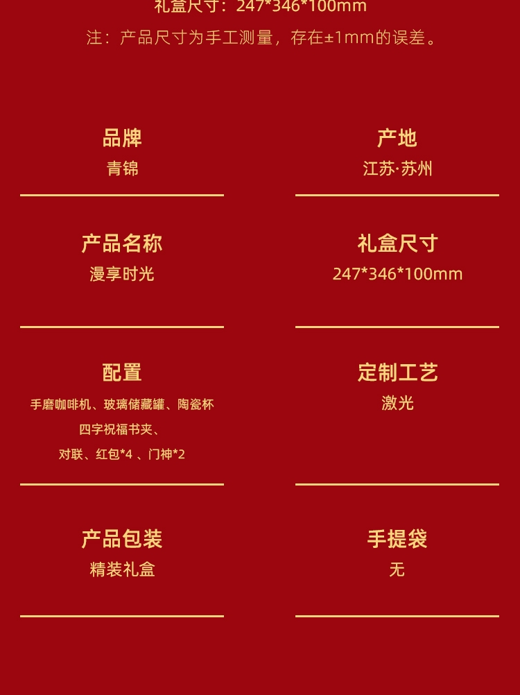 青锦 新春贺岁漫享时光手磨咖啡机礼盒
