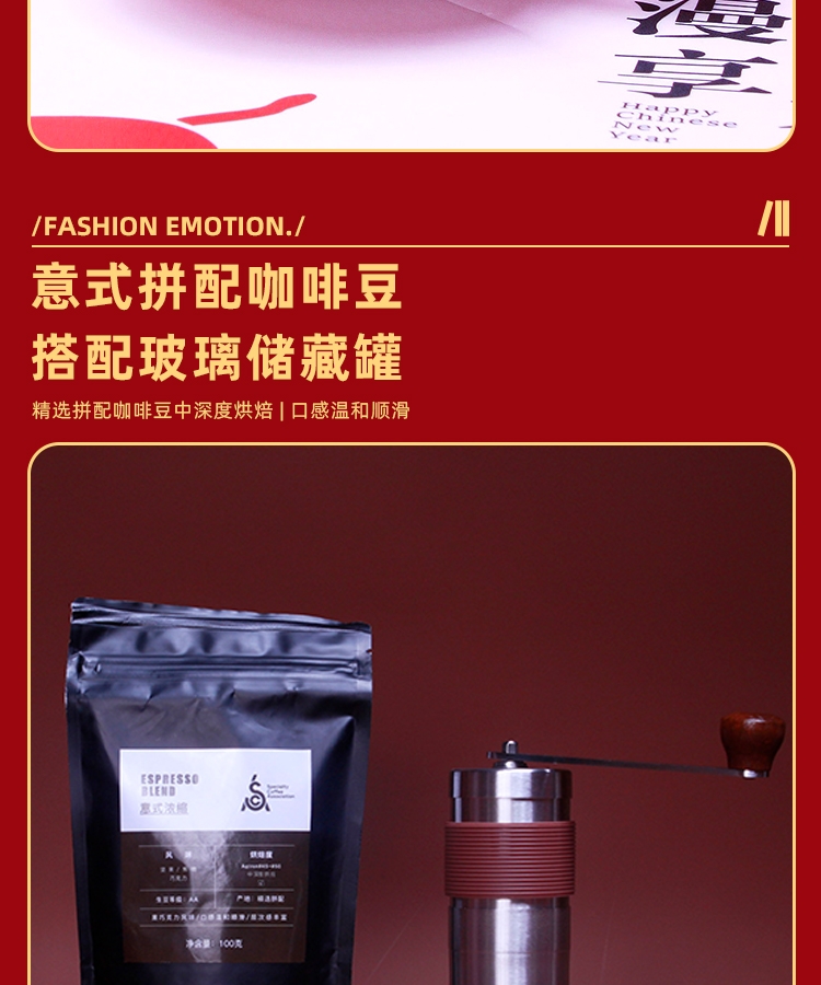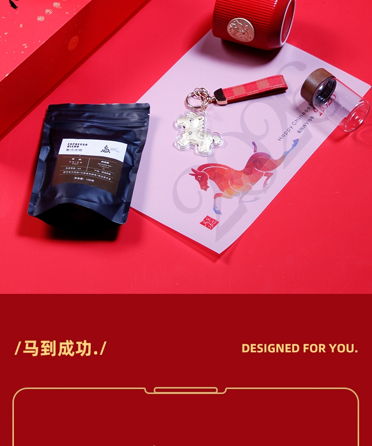 贺岁精美包装免费定制logo不限数量;品牌精工咖啡机推荐品质值得信赖 意式浓缩咖啡豆香醇;配置齐全收到即可开喝 红包对联门神让年味拉满