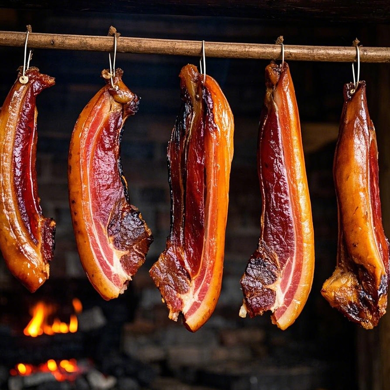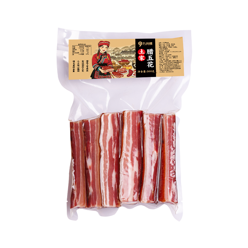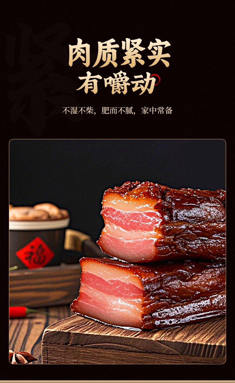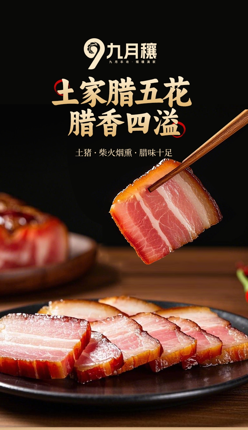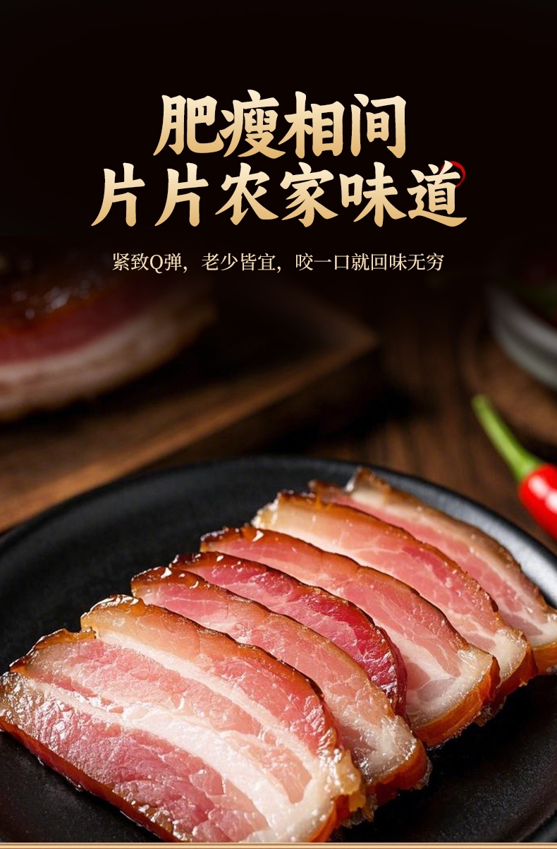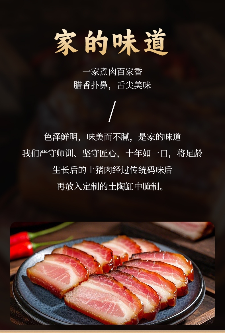 恩施土猪,传统古法手工腌制;柴火慢熏,肥瘦相间;片片农家味道,腊香四溢