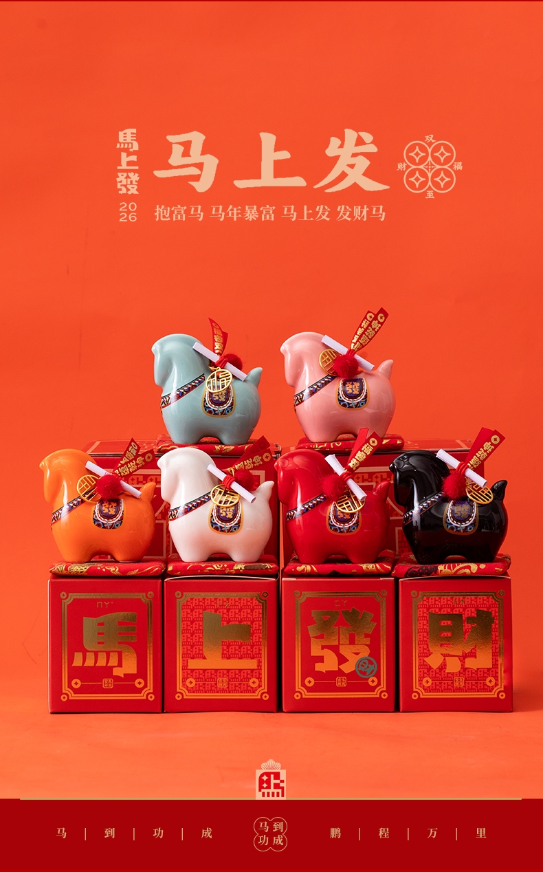 拂器 2026马上发新年礼品陶瓷摆件BJ003-1