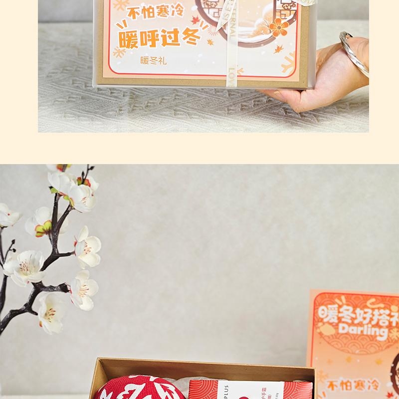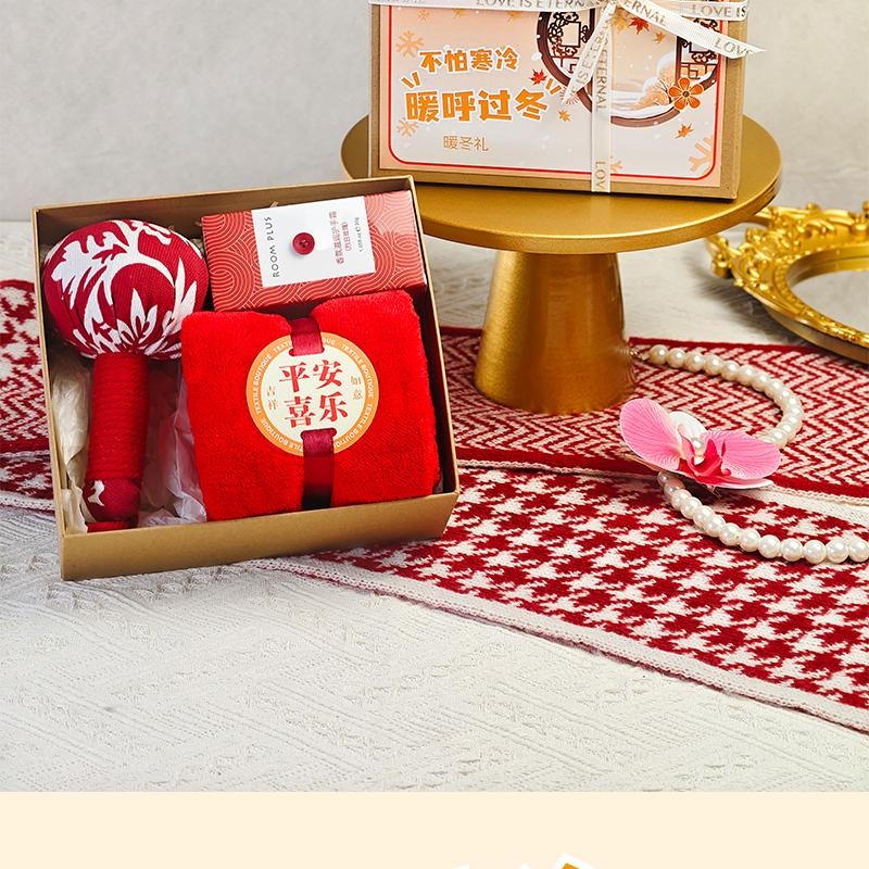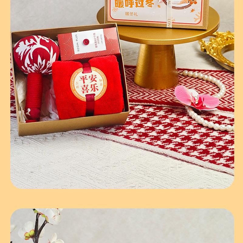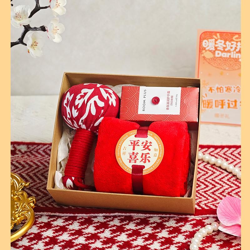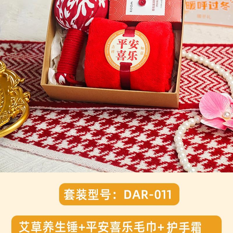 组合:艾草养生锤、平安喜乐毛巾、隆帕斯护手霜30克、牛皮绑绳礼盒+暖冬贺卡