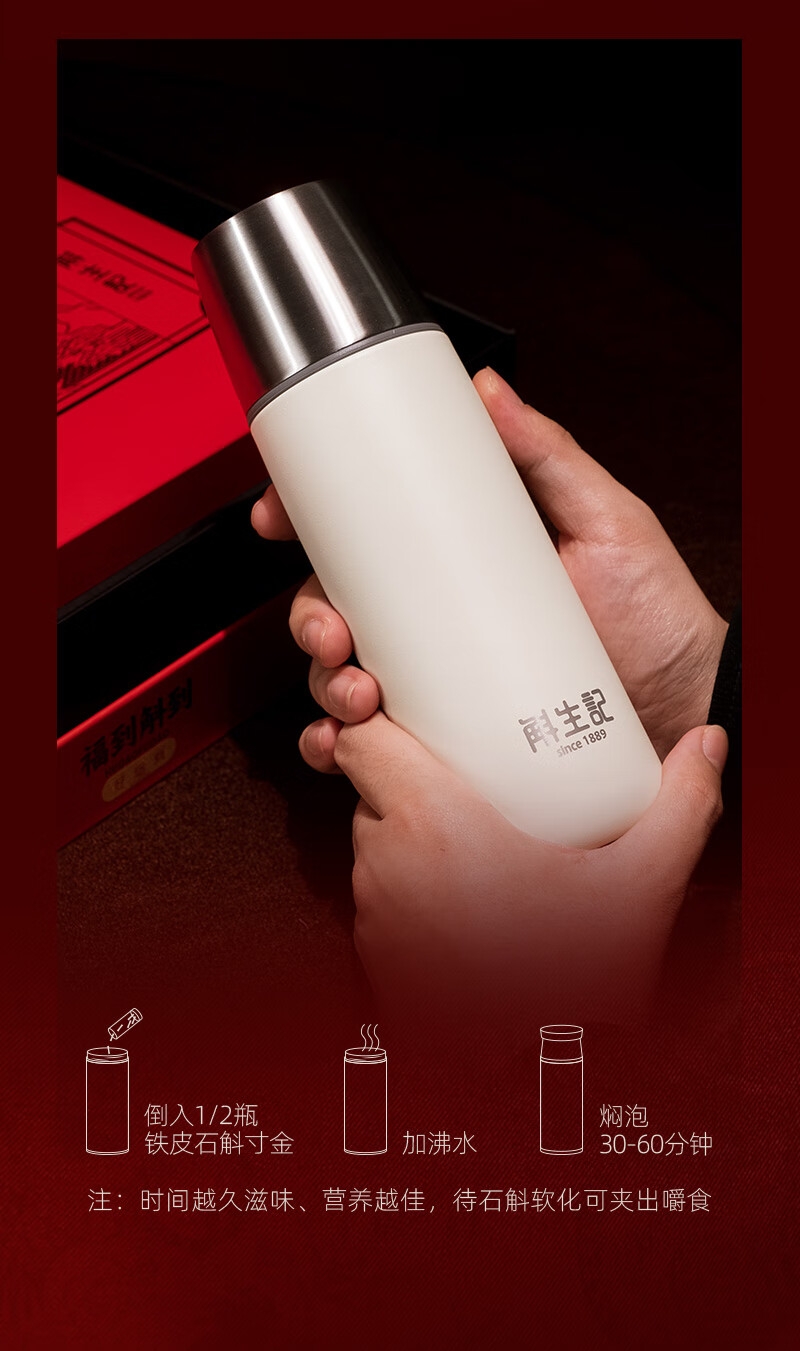 配置:铁皮石斛寸金4g×10瓶➕保温杯×1