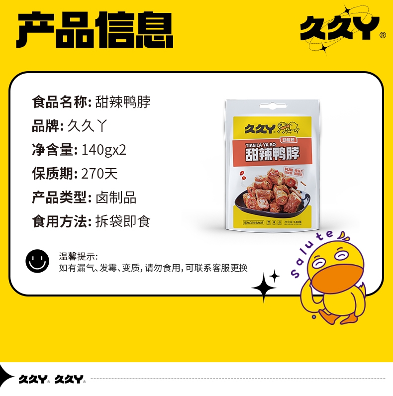 久久丫 甜辣鸭脖140g*2