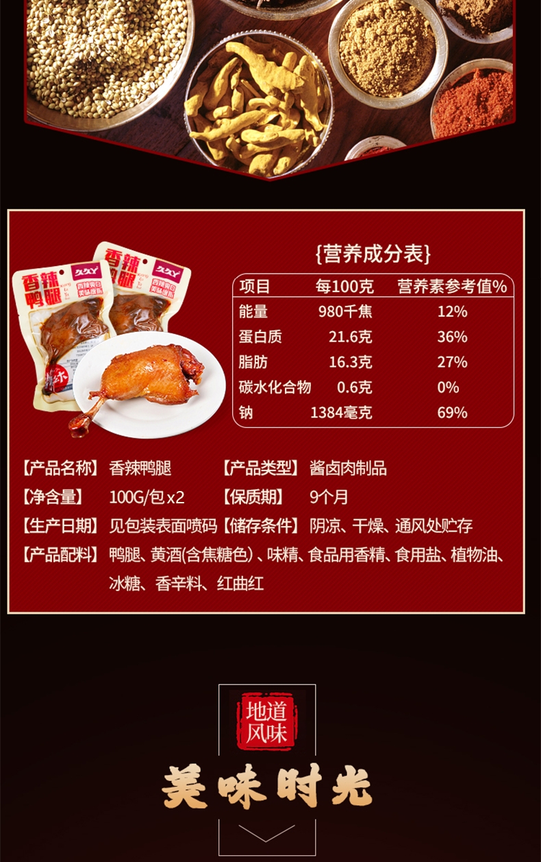 久久丫 香辣鸭腿100g*2