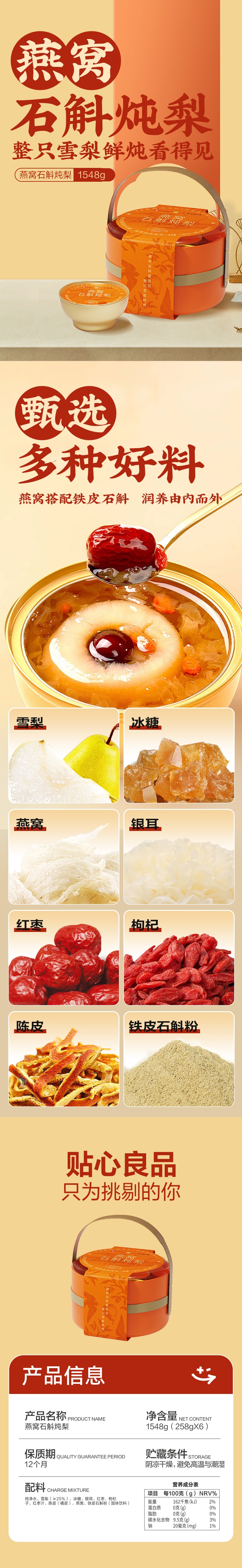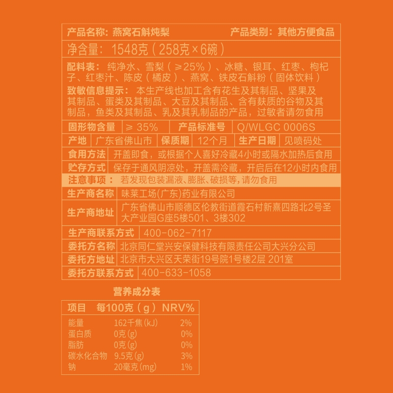 内配:燕窝石斛炖梨258g*6碗