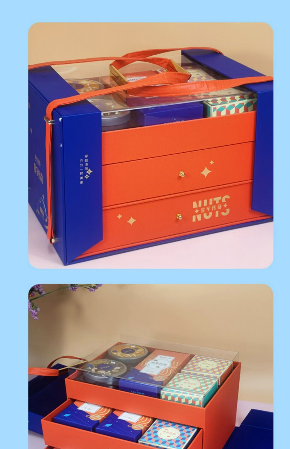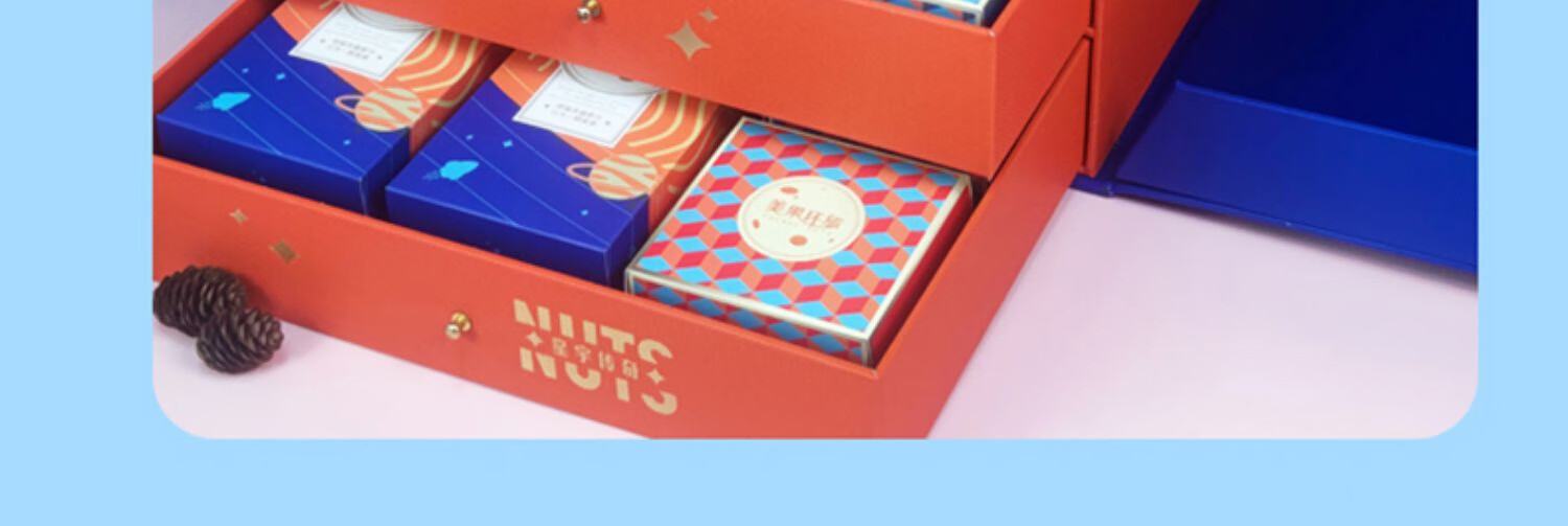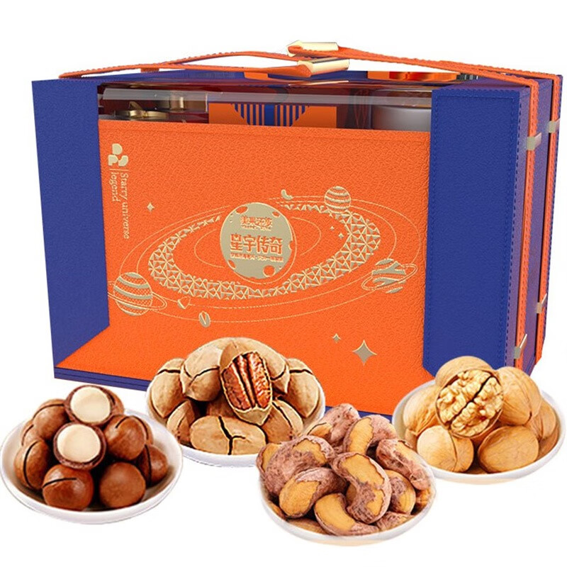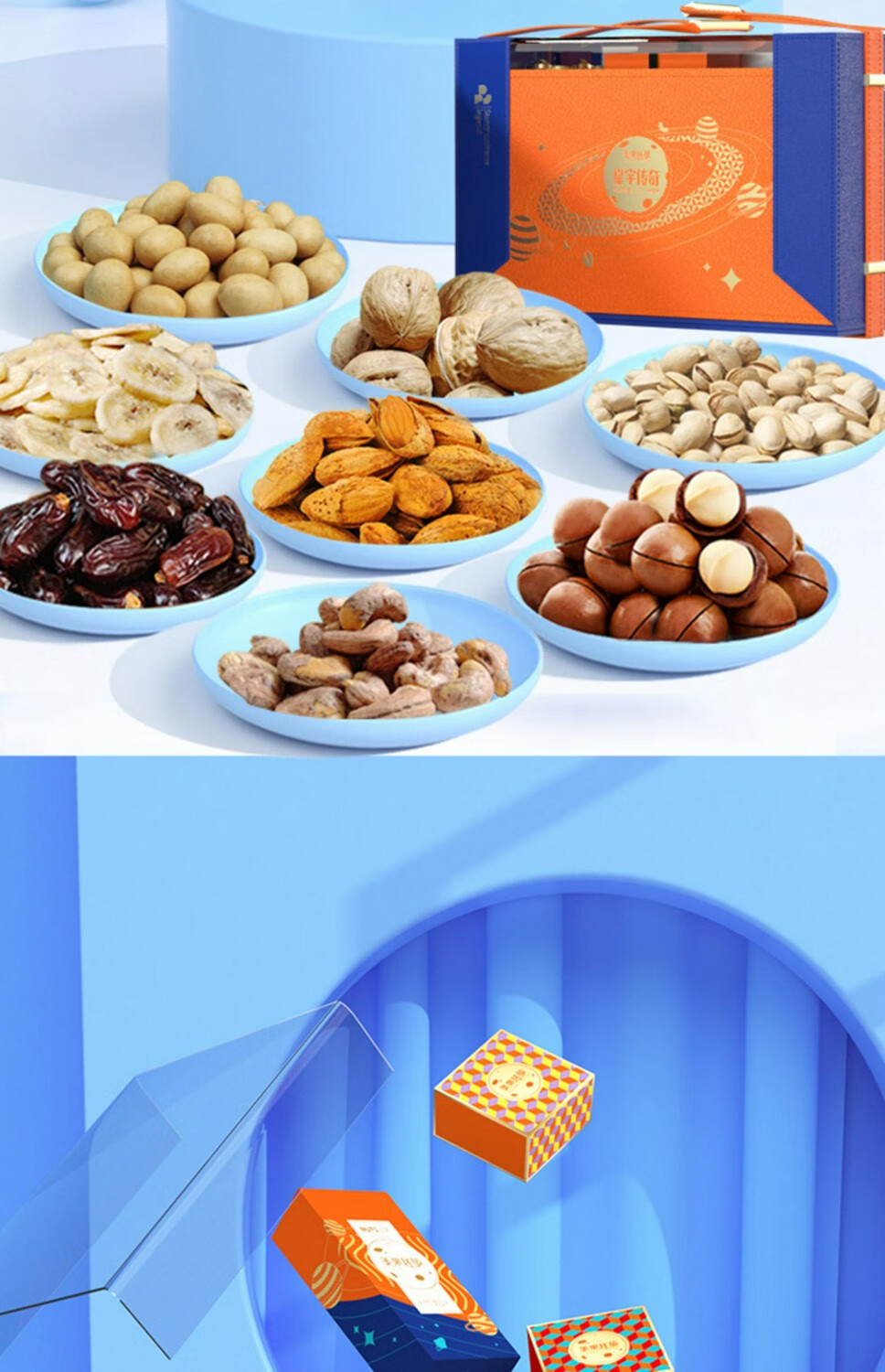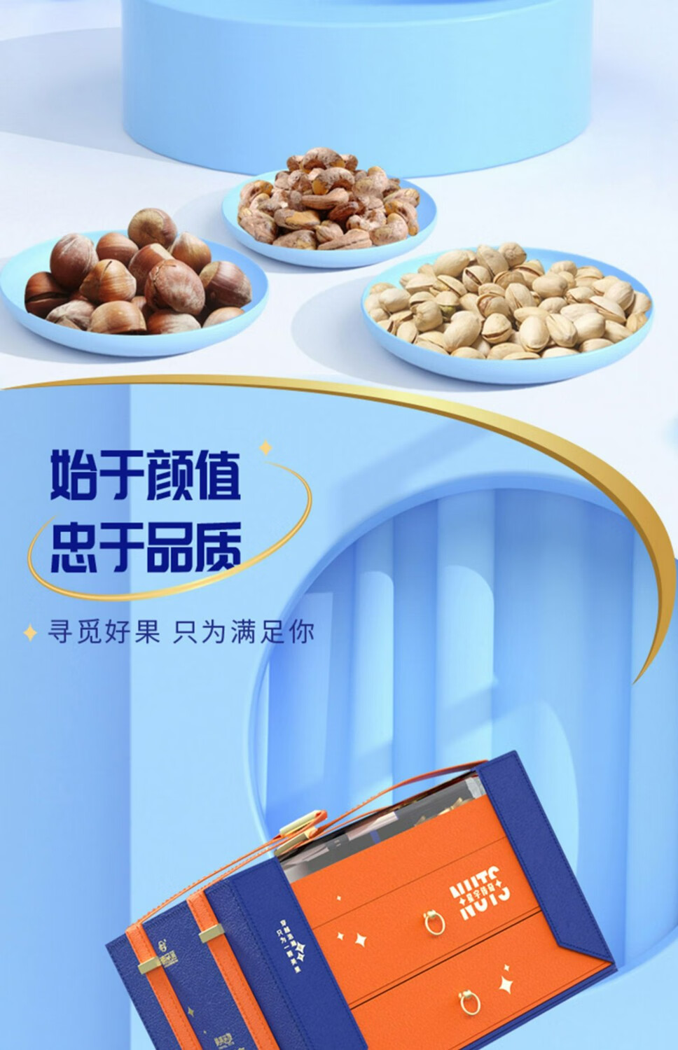 配置:开心果100g 炭烧腰果100g 菠萝肉180g 巴旦木100g 夏威夷果100g 大榛子100g 纸皮核桃150g 甜杏核300g 蔓越莓100g 提子干300g 金蕉干100g 波斯枣300g 鱼皮花生200g