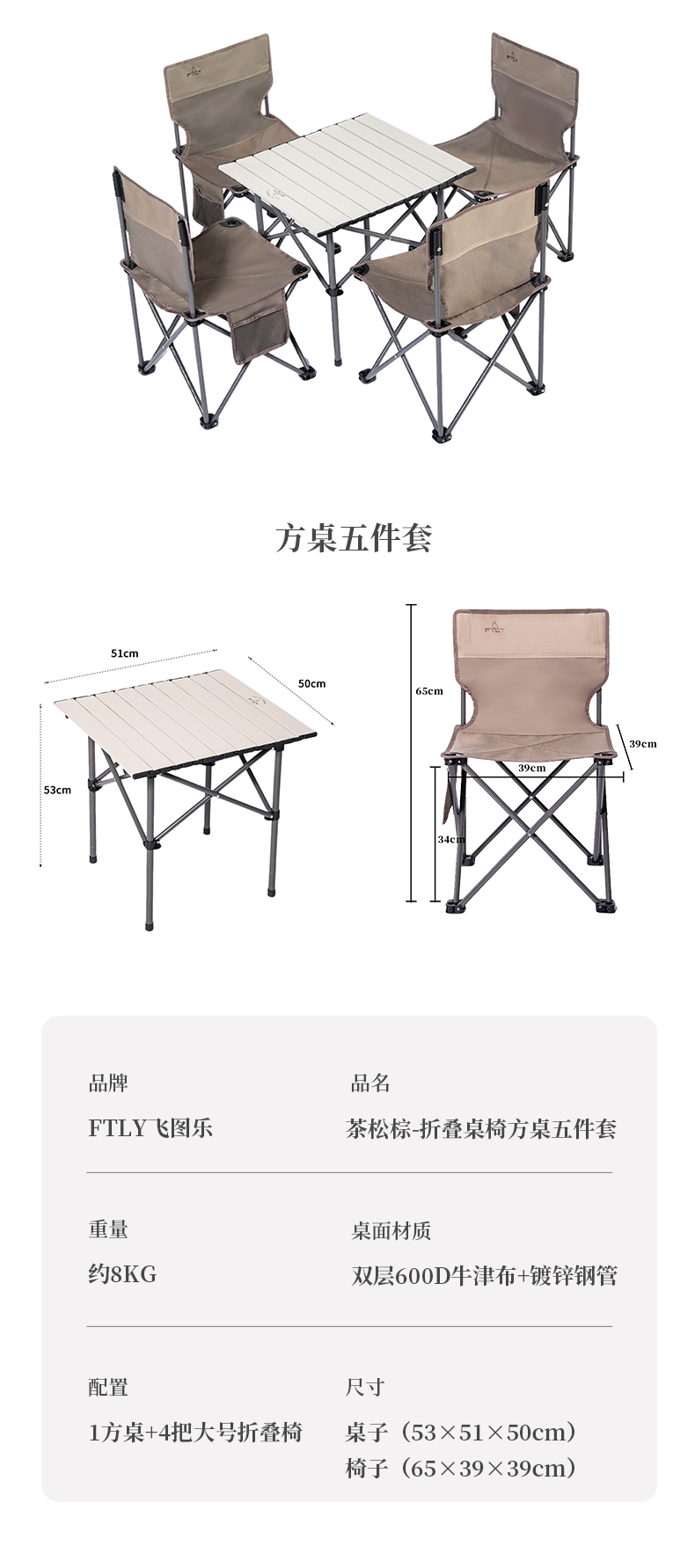 飞图乐 茶松棕折叠桌椅方桌五件套ZDZY1502