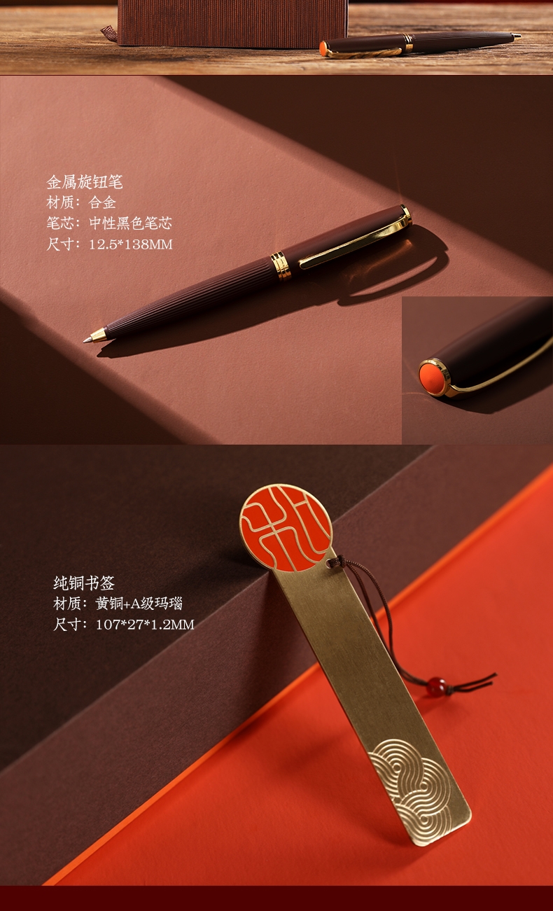 尺寸:笔记本145*215mm 签字笔12.5*138mm 书签107*27*1.2mm