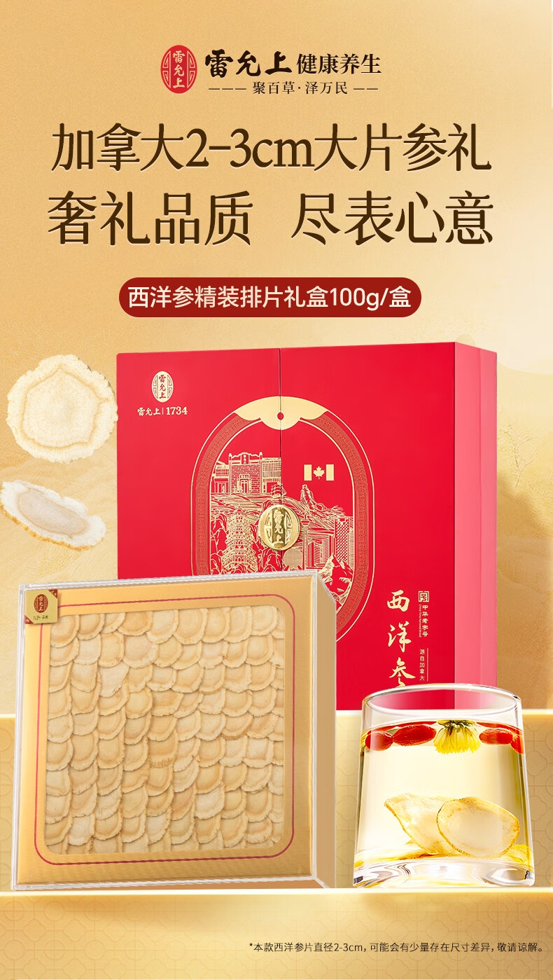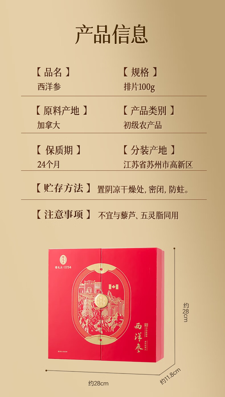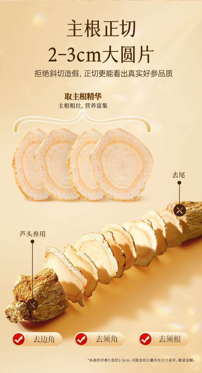 中华老字号品牌,百年企业,大品牌值得信任;加拿大进口西洋参;超大片直径2-3厘米