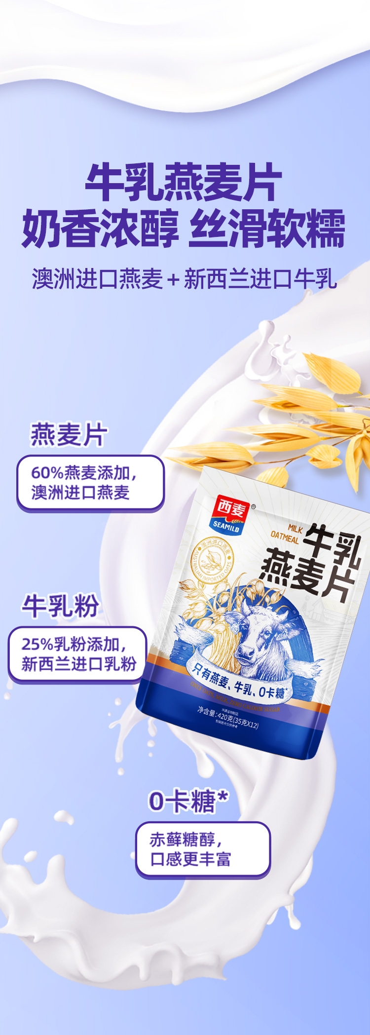 原味纯粹,营养丰富,澳洲燕麦;即食免煮,搭配多样,多项检测;老少皆宜,零添加蔗糖,多场景适用