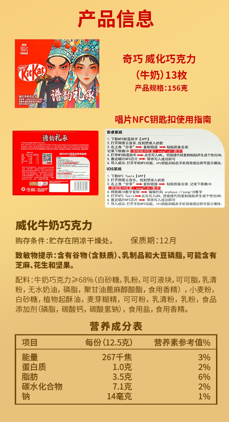 雀巢奇巧 威化牛奶巧谱韵礼承礼盒156g