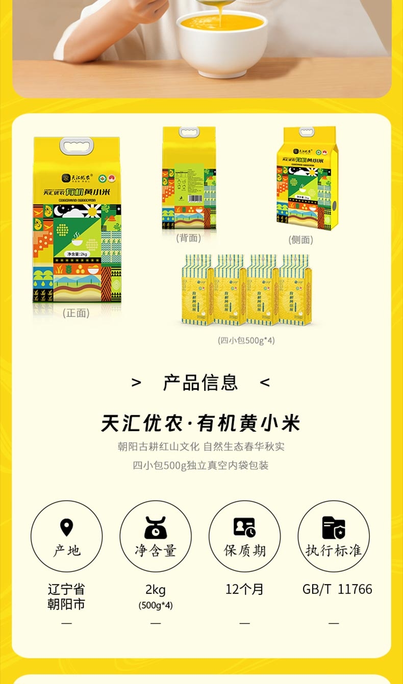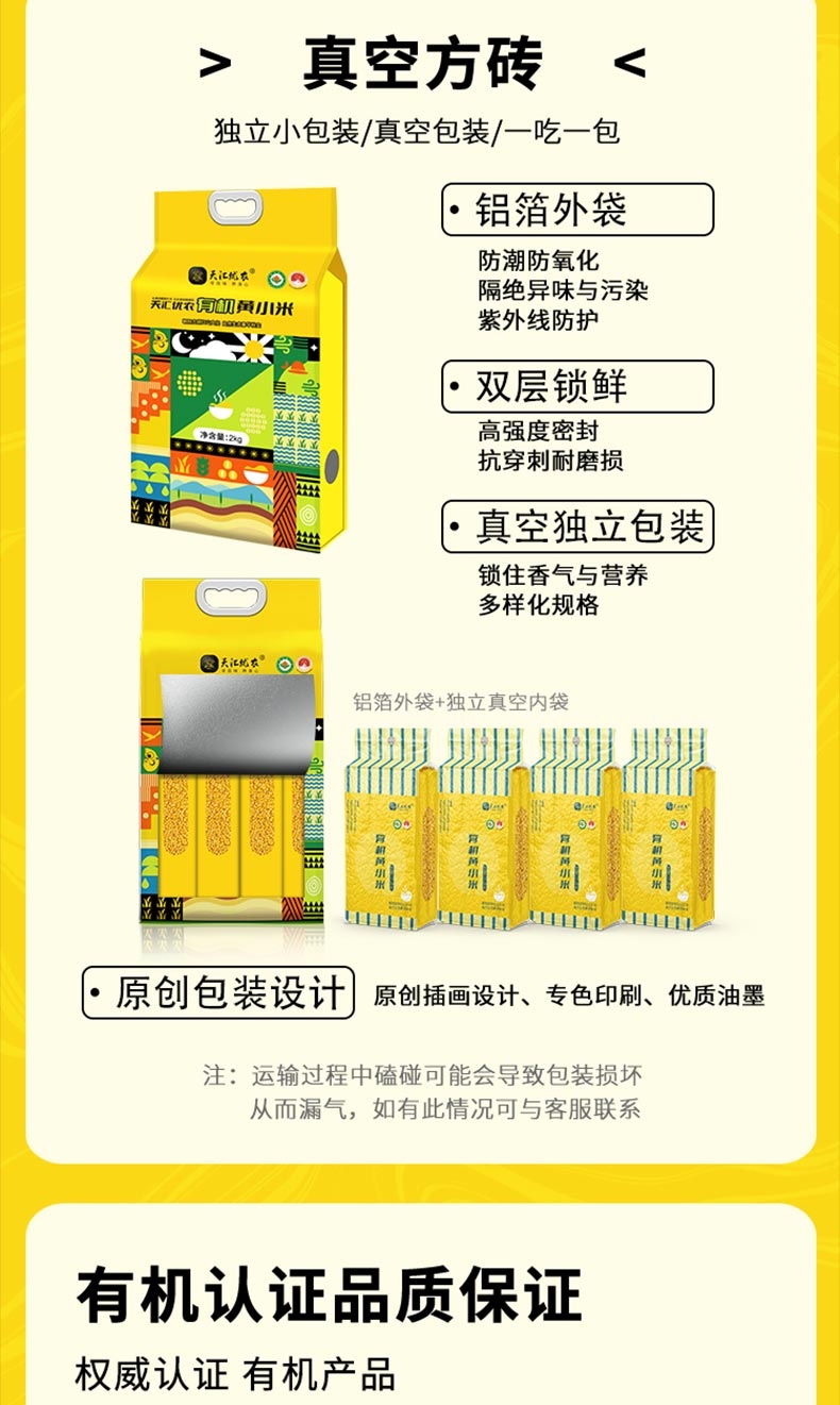 天汇优农 有机黄小米2KG