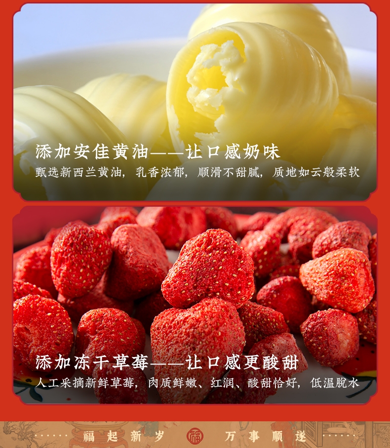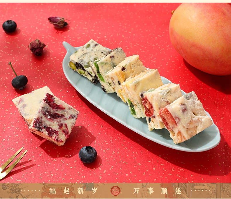 冻干水果综合雪花酥;出口品质冻干水果,果香味浓;40%棉花糖+18%果仁