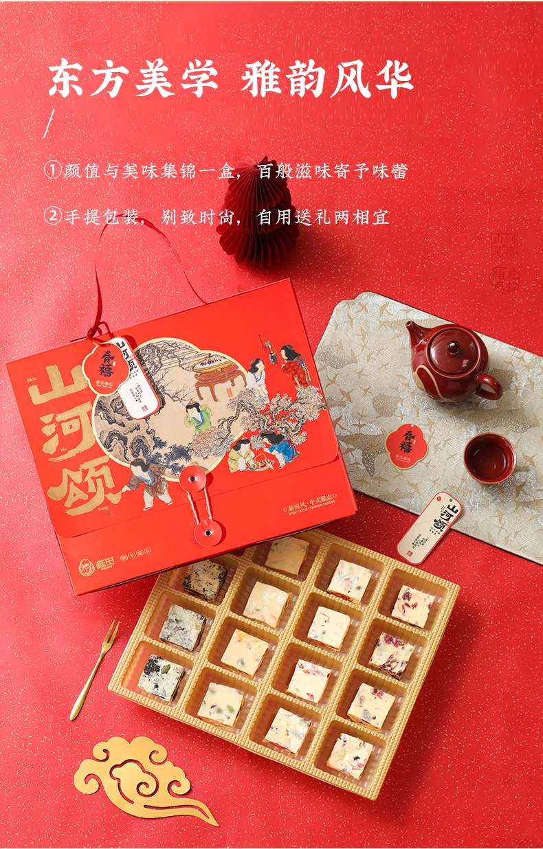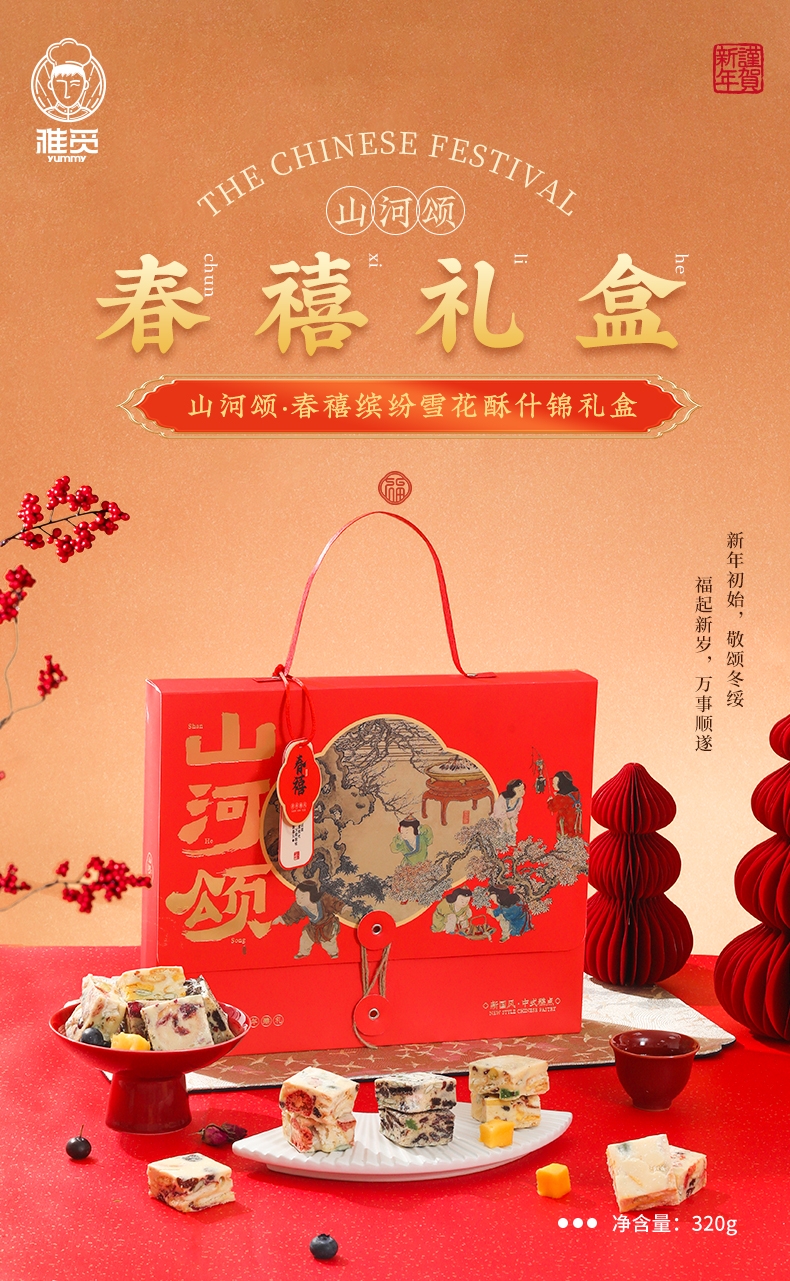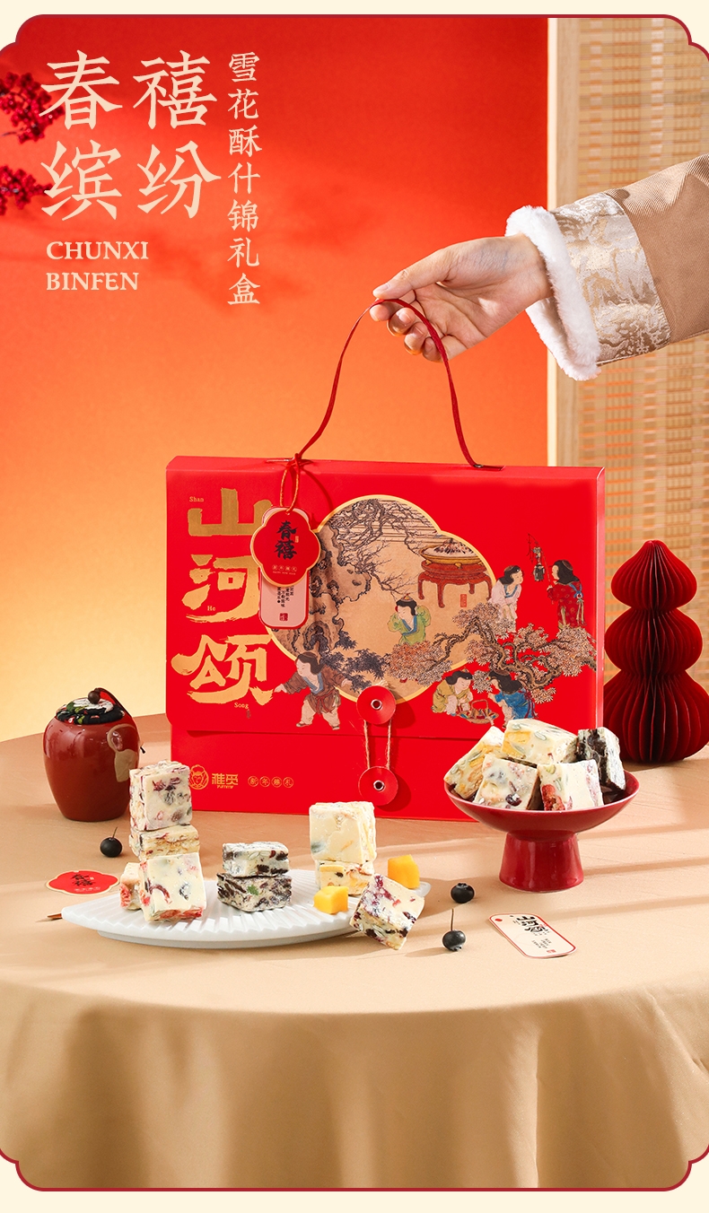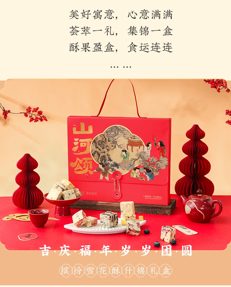 雅觅 山河颂春禧缤纷雪花酥什锦礼盒320g