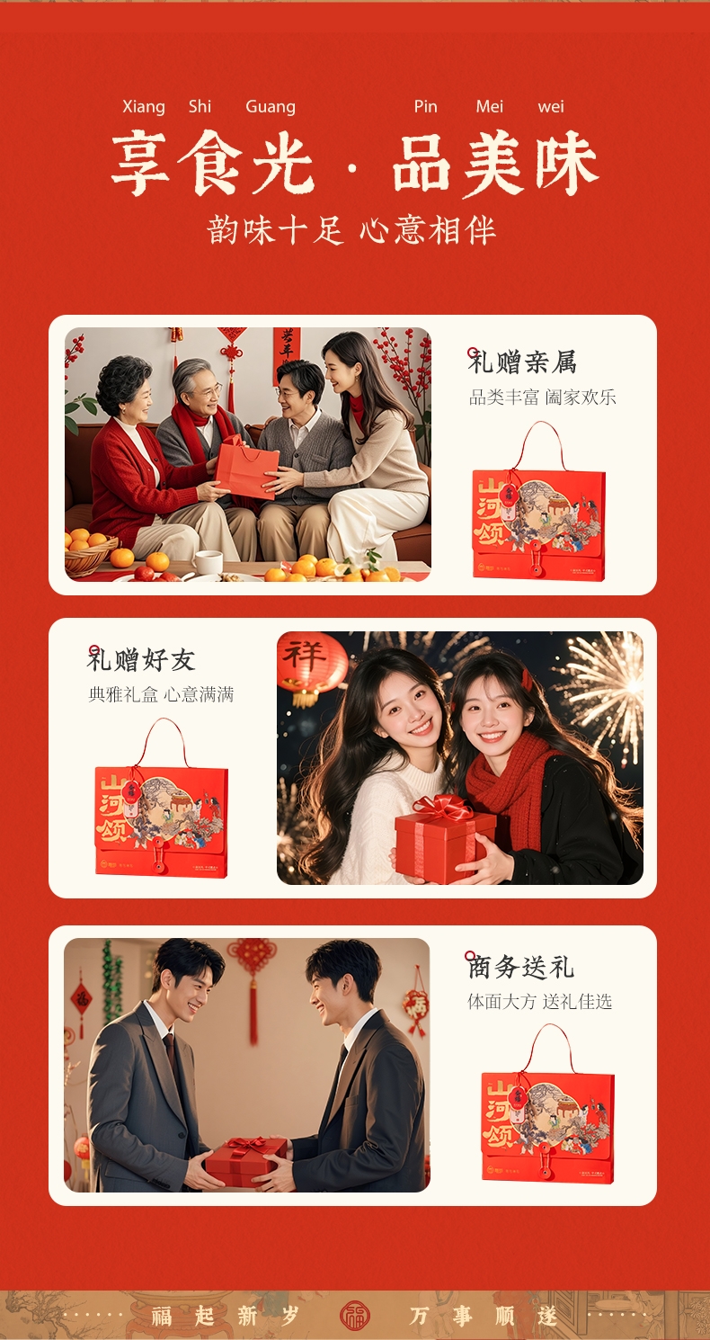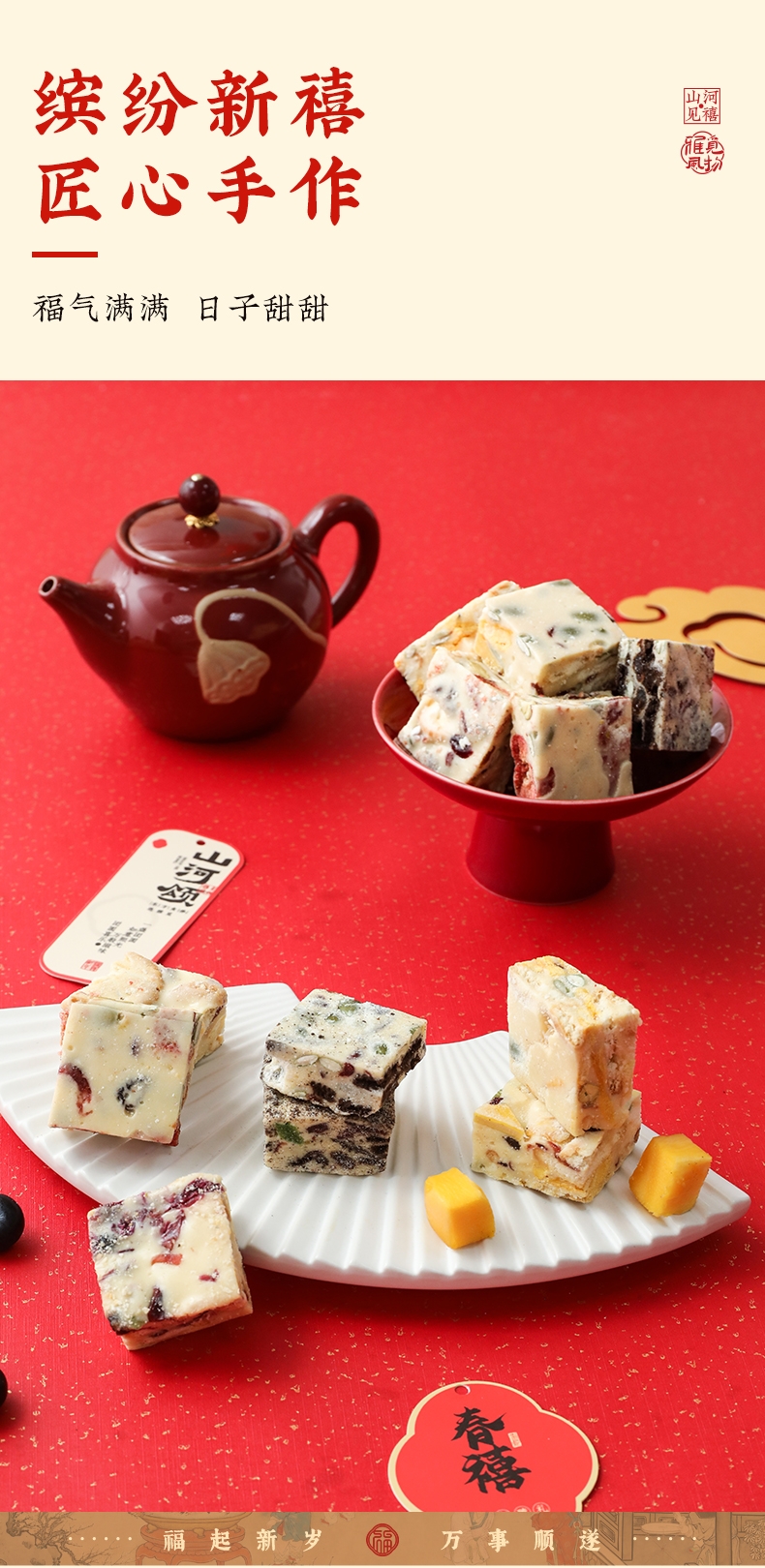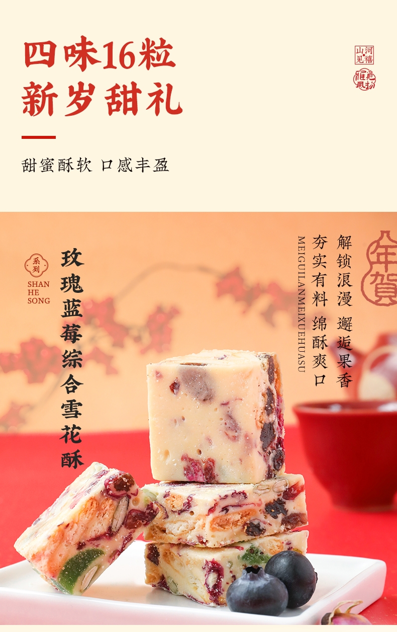 雅觅 山河颂春禧缤纷雪花酥什锦礼盒320g