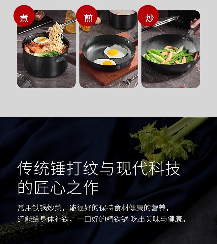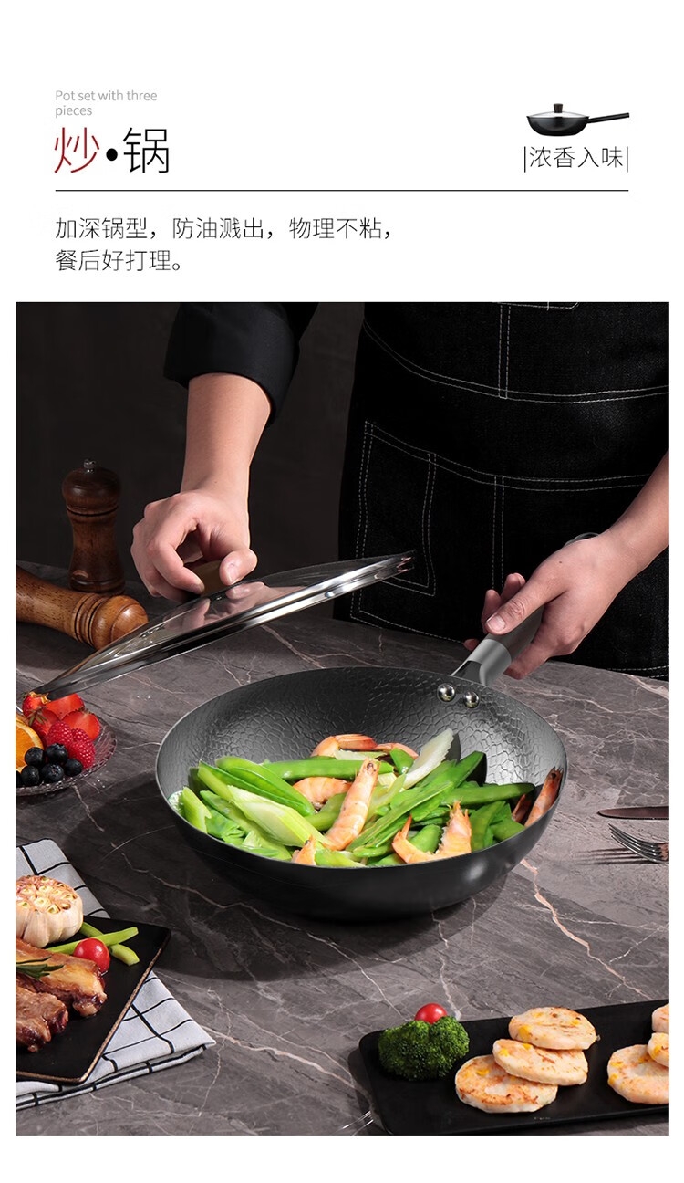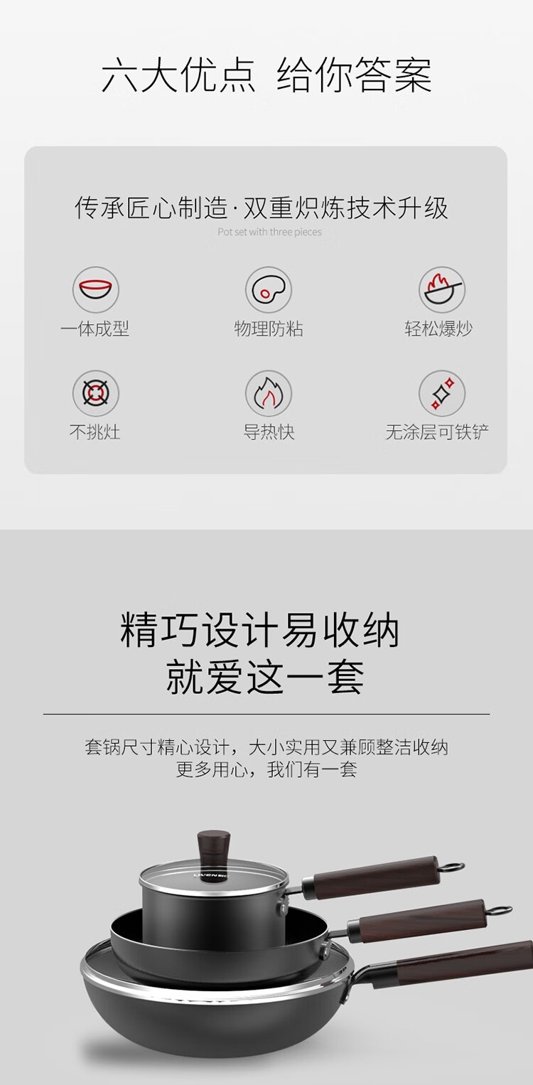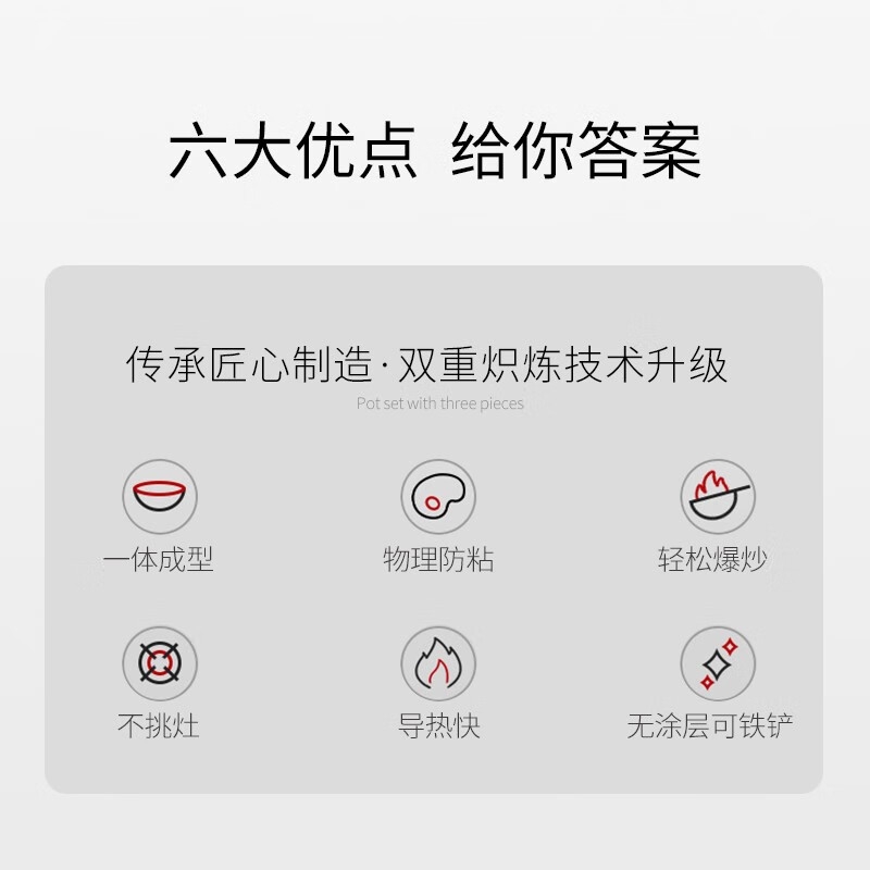一体成型;不挑灶;物理防粘;导热快 ;无涂层可铁铲