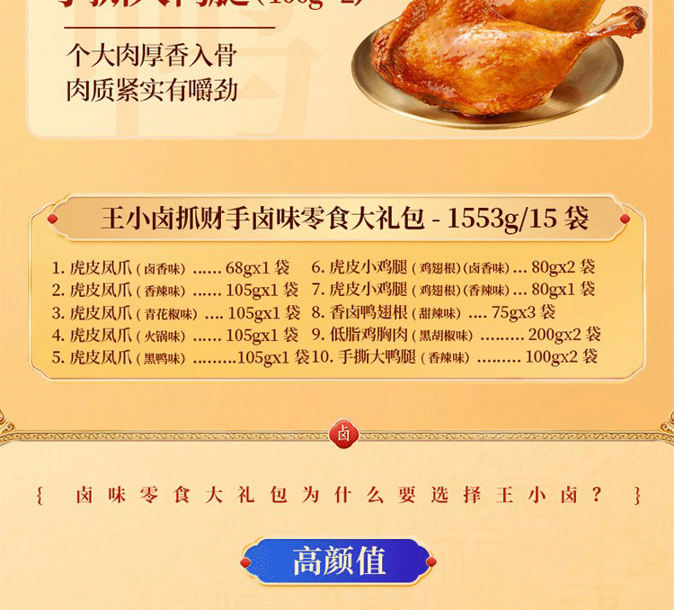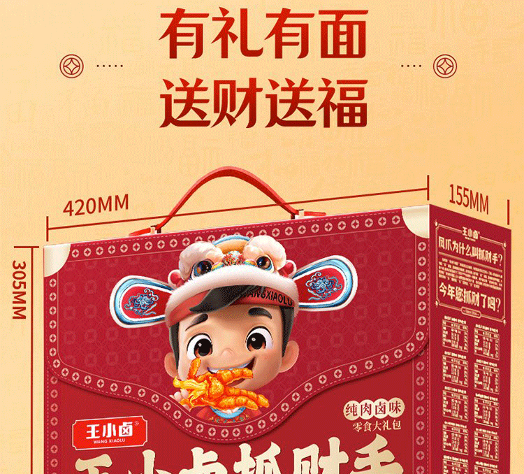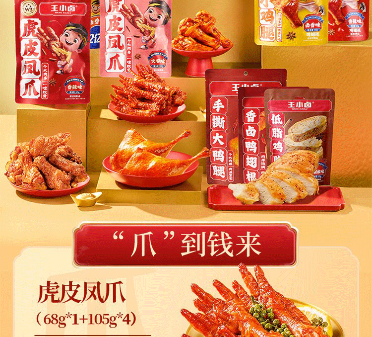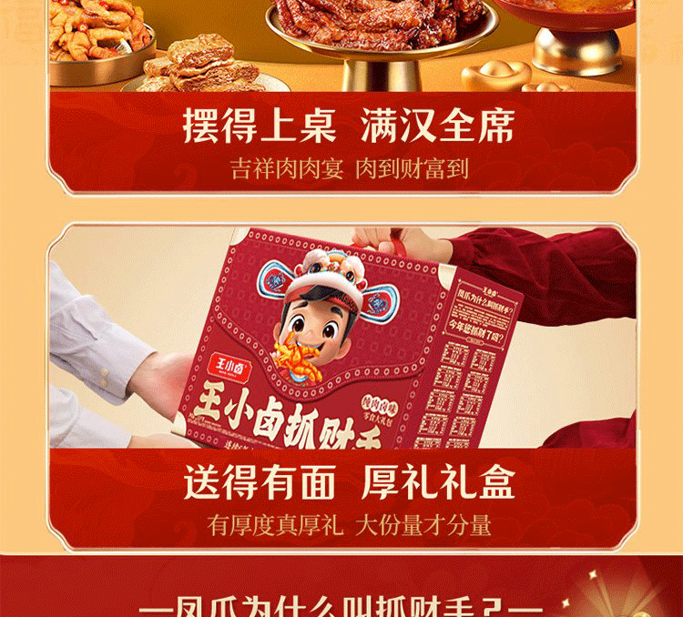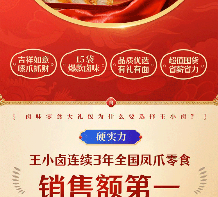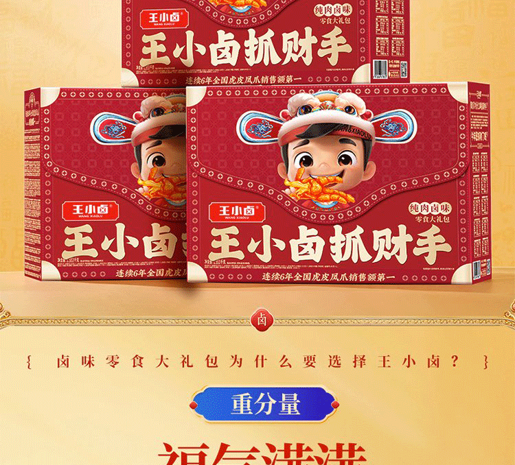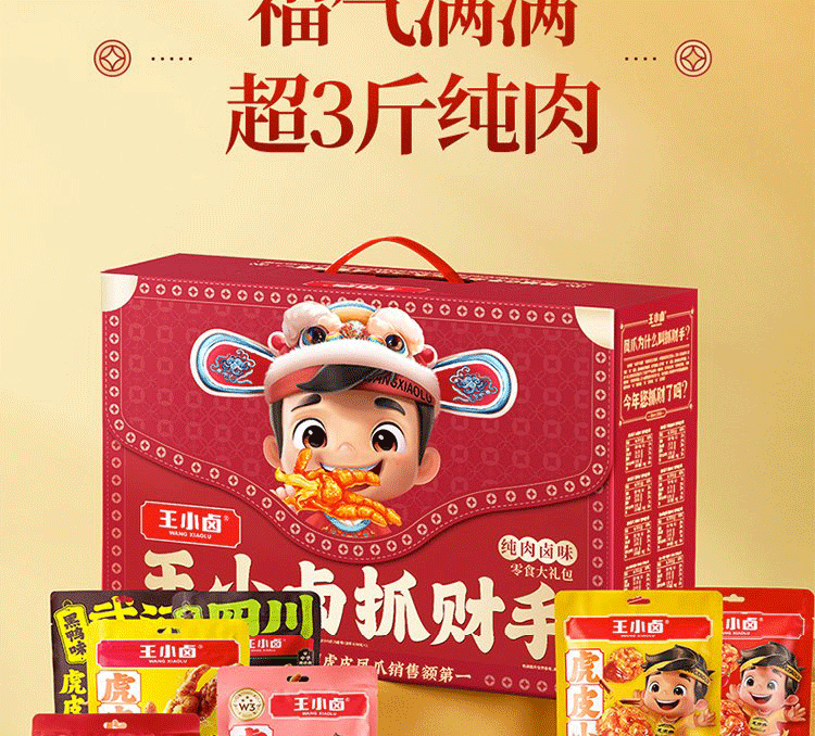 王小卤一嗦脱骨肉厚筋多;创新异形礼盒,无惧对比更用心;优选纯肉零食组合,有味不将就