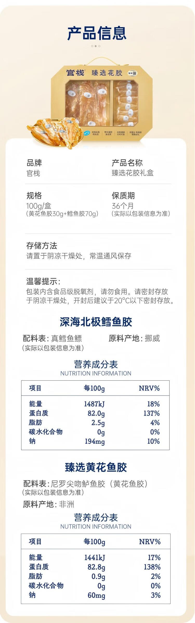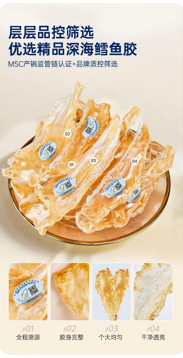 配置:35头鳕鱼胶70g+90头黄花鱼胶30g