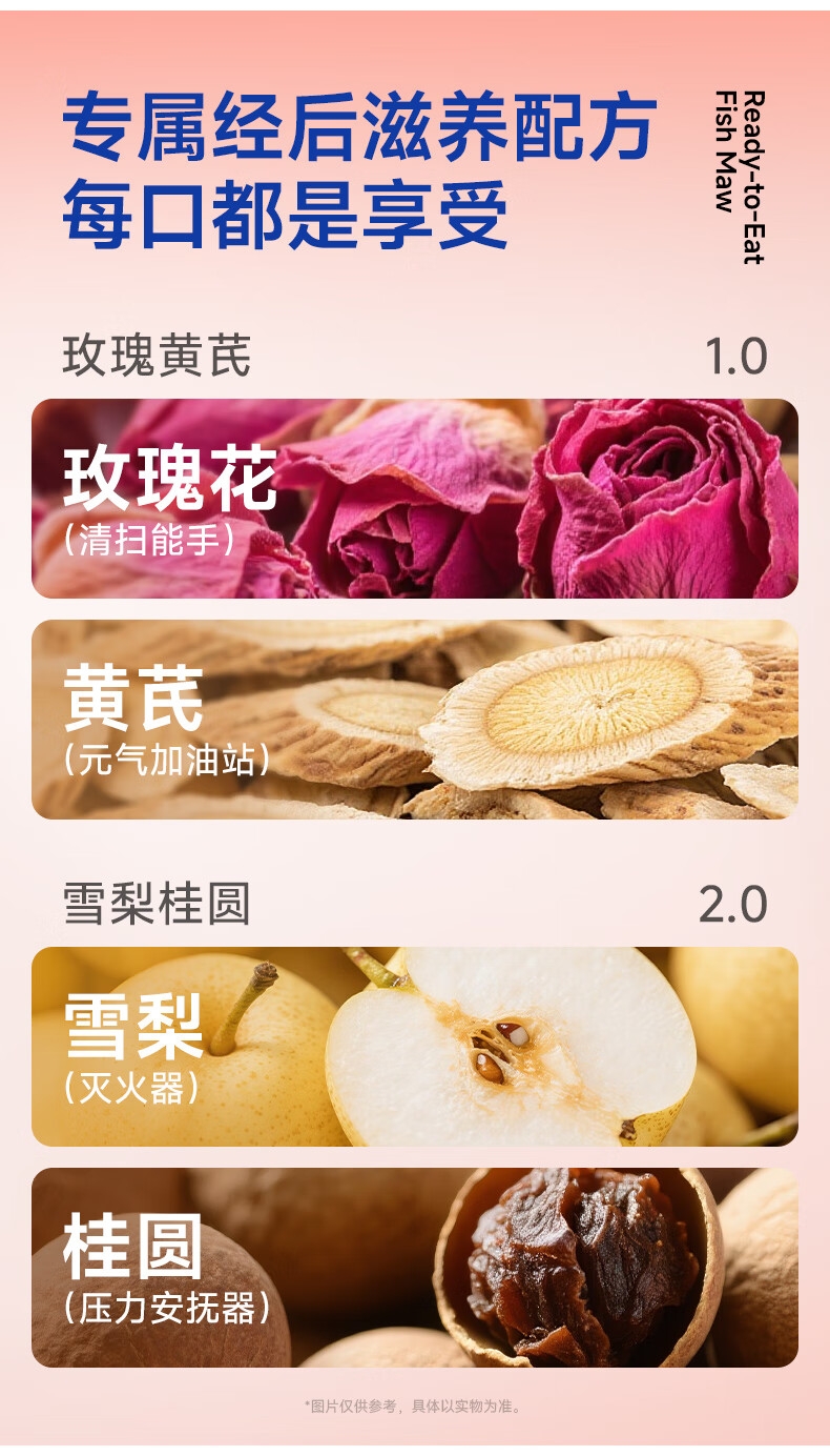 配置:(玫瑰黄芪X4+雪梨桂圆X3)70gX7瓶