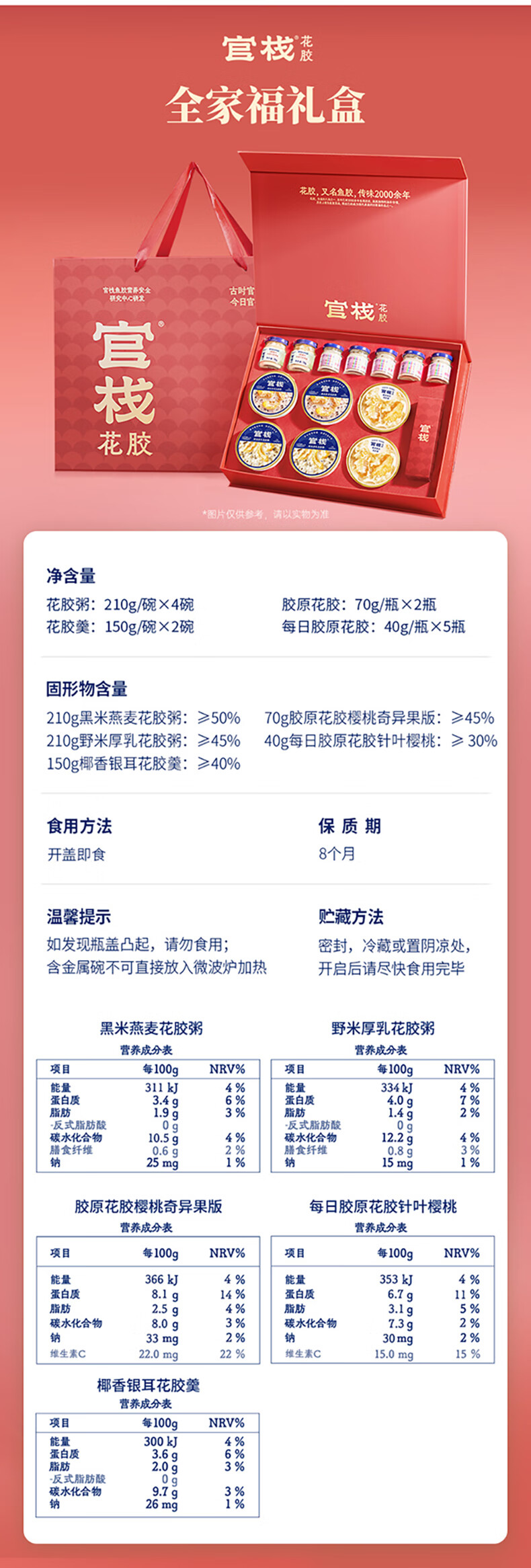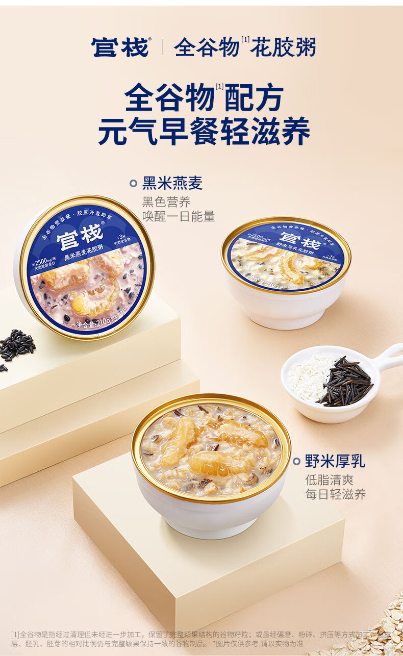 配置:黑米燕麦花胶粥220gx2+椰香银耳花胶羹150gx3+樱桃奇异果70gx2+针叶樱桃40gx5