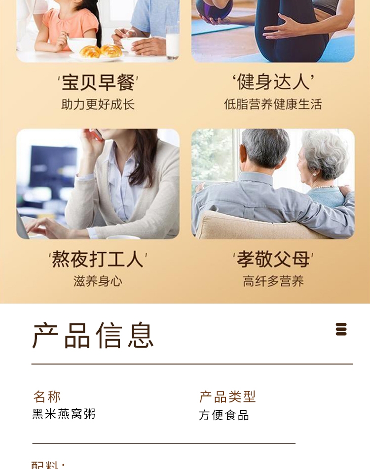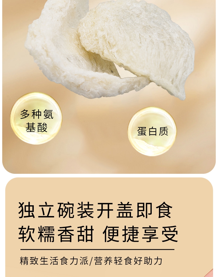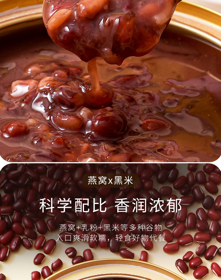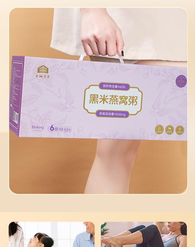 真材实料,纯净天然,燕窝丝饱满,孕妇老人小孩可食用;核心成分: 马来西亚燕窝、黑米、红豆、燕麦、糯米、;独立小袋包装,方便携带,无需任何步骤,1秒开盖即食